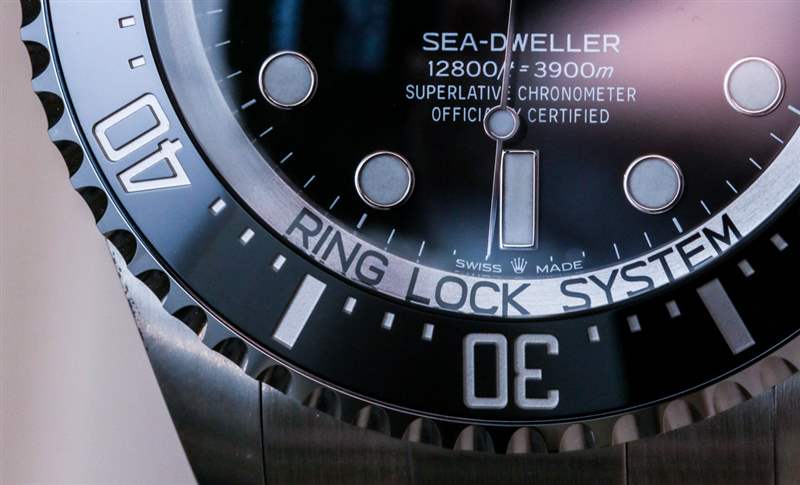 自動氦氣釋放閥是勞力士最初在 1960 年代后期為嚴(yán)肅的專業(yè)潛水員發(fā)明的一項(xiàng)功能,當(dāng)潛水員在減壓室中度過時間時,當(dāng)氦氣試圖從其中逸出時,他們不希望手表破裂。按照今天的標(biāo)準(zhǔn),這是一個非常小眾的目的,大多數(shù)人都同意繼續(xù)實(shí)施這些功能的手表品牌這樣做只是因?yàn)樗且粋€關(guān)于手表的更多技術(shù)故事。無論如何,自動氦氣釋放閥位于外殼的左側(cè),當(dāng)然,您會在 Ring Lock 上看到方便的文字提醒您。