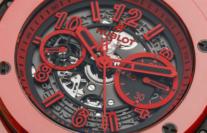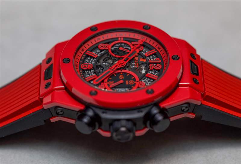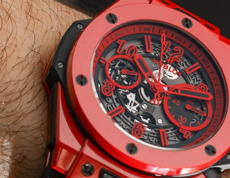 我將是第一個承認(rèn)我是顏色的傻瓜的人。我到底是什么意思?我的意思是把舊的東西單獨渲染成新的顏色可以真正吸引我的注意力。這是宇舶對 Big Bang UNICO Red Magic 參考 411.CF.8513.RX 手表所做的一半——將 Big bang UNICO 手表制作成紅色。故事的另一個更有趣的技術(shù)方面是他們用紅色陶瓷制作了一塊紅色手表。這是以前沒有做過的事情。