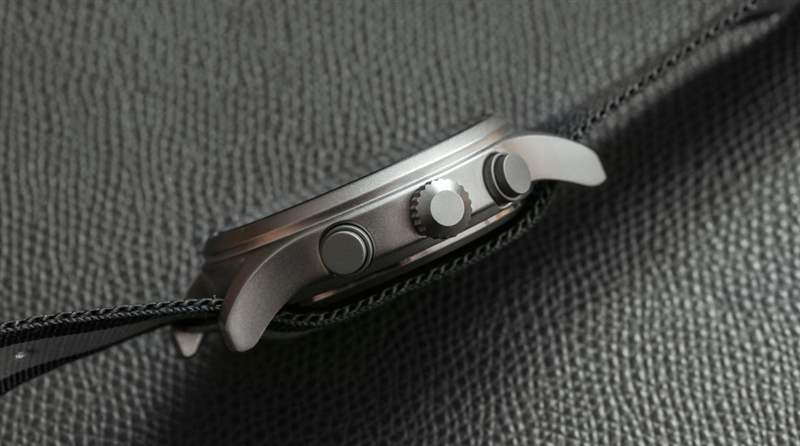 顯然,不想讓您感到困惑,Timex 生產了一款名為 Allied Chronograph 和 Allied Chrono 的手表。是的,這些手表很相似——但實際上是不同的手表,有不同的表殼和不同的表帶(盡管它們共享相同的機芯)。這款特殊的 Timex Allied Chrono 型號為 TW2R76800LG,這意味著它具有灰白色表盤和噴砂精鋼表殼。第一個有趣的細節是表盤的顏色,實際上是由水晶修飾的。Timex 為這款水晶打造了一種淡淡的“煙熏效果”,這意味著它只比標準透明水晶稍暗一點。這種效果并沒有真正降低易讀性,而是為設計增添了一種有趣的個性和個性感。