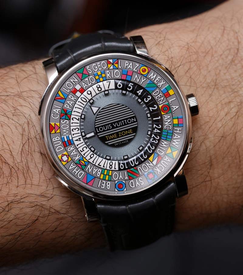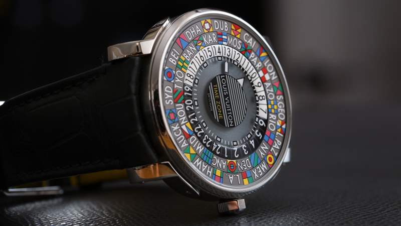 世界時間的另一個怪癖是,與大多數標準世界時間手表不同,您無法讀取本地時間以及另一個時區的時間。相反,我的理解是你可以在表盤上循環穿越 24 個時區,但你看不到參考時間。借助 Escale(意為“本地”)時區,路易威登通過 LV 87 自動機芯解決了這個問題。該運動有趣且有趣,但在設計的名義上確實存在一些易讀性缺陷。該機芯的表盤上有兩個旋轉圓盤,以及兩個小時和分鐘指針。沒有秒數或日期指示器,我認為很多手表愛好者不會有問題。