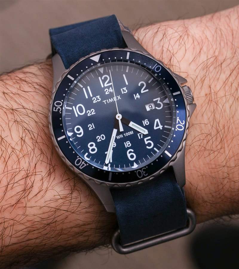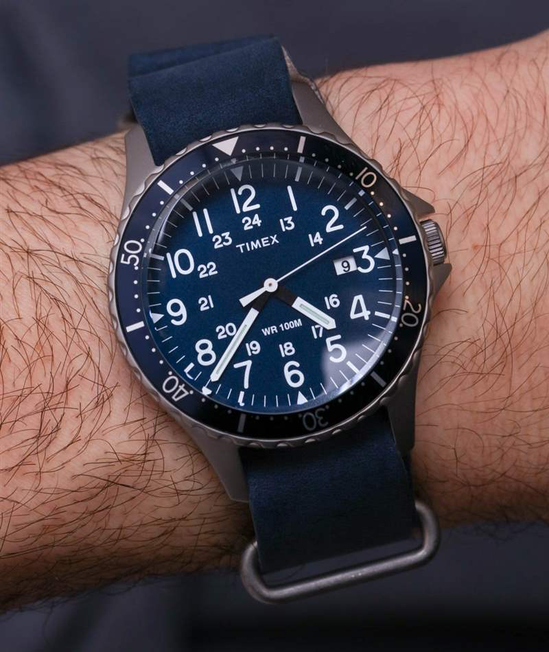 圍繞著厚實的礦物水晶,旋轉表圈具有獨特的外觀,并帶有經過時間的刻度?;使谑艿交使谧o衛隊的保護,士兵們很欣賞他們通過在狹窄的地方將皇冠掛在東西上而打破手表。手表內部是一個石英機芯(時間加日期復雜功能),幸好被表殼遮住了。我不喜歡響亮的手表,而且一些帶有塑料外殼的便宜手表會令人討厭地滴答作響。我不記得 Timex Navi Ocean 有這個問題。雖然,我體驗過的一些更便宜的 Timex 型號確實可以聽到滴答聲。該機芯由 Timex 通過其在菲律賓的制造工廠制造。如果今天制造的手表可以在 50 年前發行給士兵,那么 Timex Navi Ocean 及其同事的產品將是一個不錯的選擇。我有一種感覺,這意味著它們在日本可能很大。說真的,如果你想要一款一點都不難看,而且不會花很多錢的軍用手表,那么看看這些——尤其是如果你更喜歡尺寸適中的運動手表。