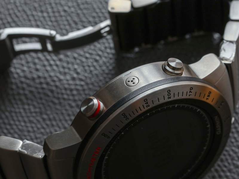 Garmin Fenix 與其他競爭對手的智能手表之間的另一個主要區別是缺少觸摸屏。如今,觸摸屏在智能連接設備上非常普遍,您很可能會發現自己在屏幕上滑動以滾動菜單選項。我不完全清楚為什么 Fenix 沒有觸摸屏,但我懷疑這是因為他們使用的屏幕類型,他們稱之為“陽光可見透反射像素內存 (MIP)”展示。屏幕寬 1.2 英寸,對于 Fenix Chronos 系列,它覆蓋著藍寶石水晶。