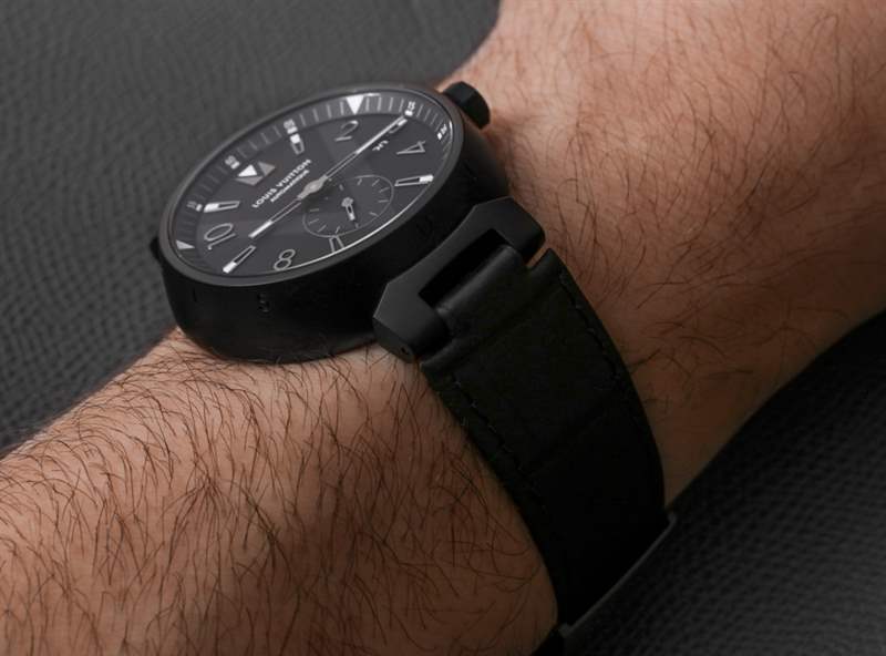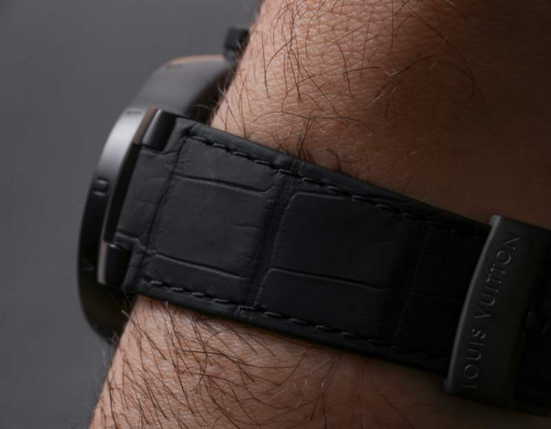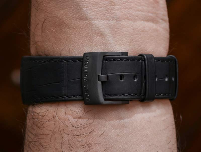 Tambour All Black Petite Seconde 內(nèi)部是一個基本的瑞士 ETA 機(jī)芯,我相信是 ETA 2895 自動機(jī)芯。它是一款 4Hz 高級機(jī)芯,具有 42 小時動力儲存。手表隨附的表帶是迷人的啞光黑色鱷魚皮,如果您要求,路易威登會向您出售各種其他表帶。