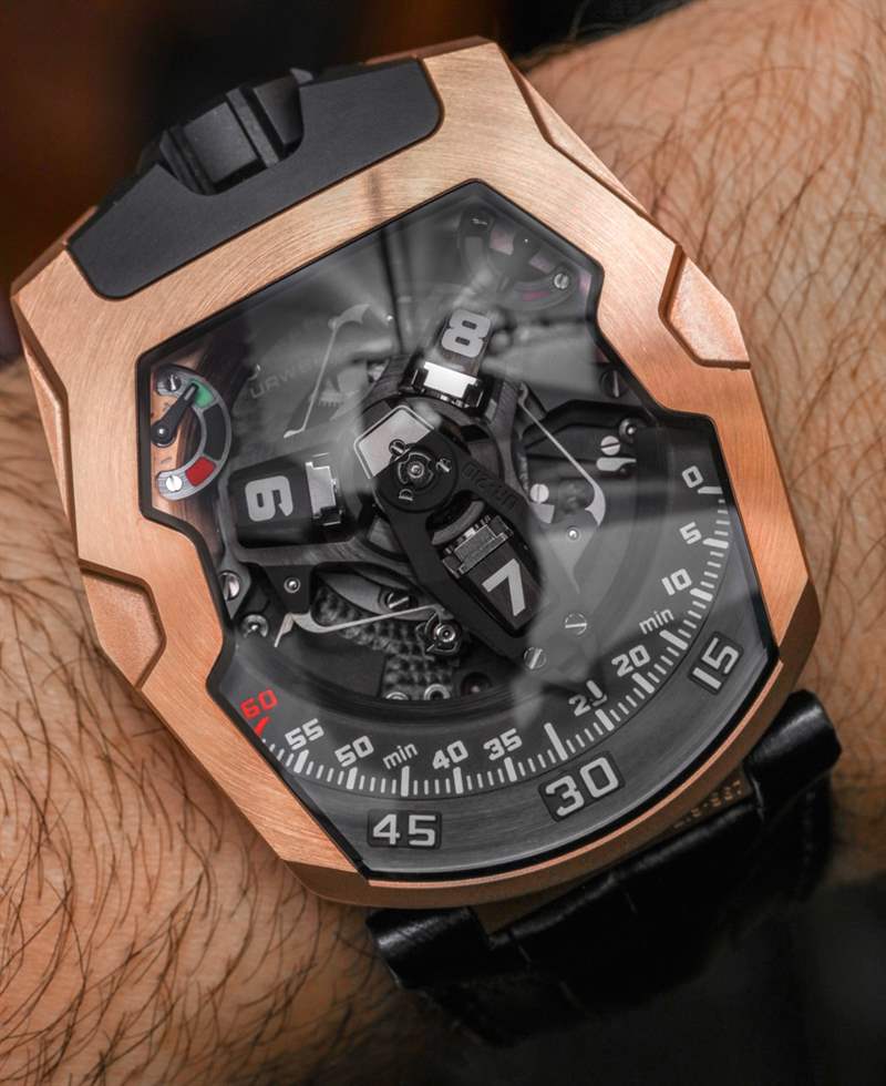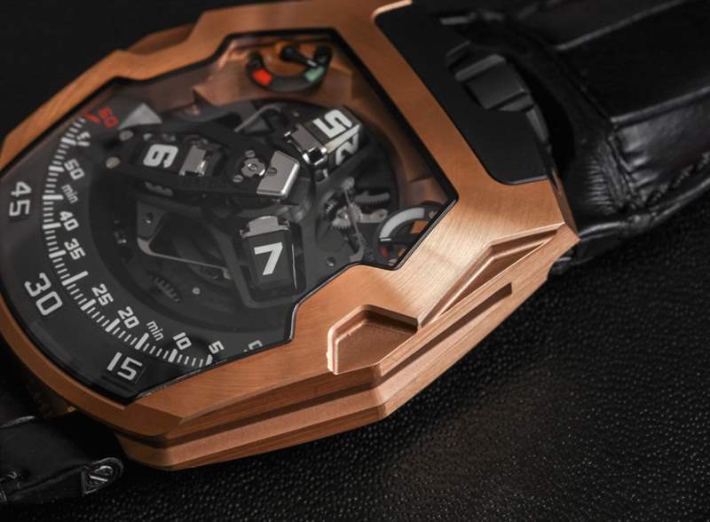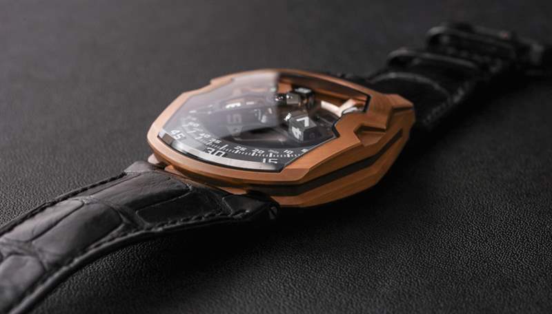 大多數(shù)版本的 UR-210 都是鋼制的,這使得這款紅金模型與眾不同。雖然貴金屬 Urwerk 時計絕不是新事物,但引人注目的貴金屬外殼 Urwerk 時計僅次于鋼和鈦等更實用的金屬。當然,這與省錢無關(guān),因為我們談?wù)摰氖直砥骄繅K售價可能為 100,000 美元。這真的只是品牌的主題和重點,它不是舊世界的奢侈品,而是未來主義的會議機制。廣告訊息廣告信息結(jié)束