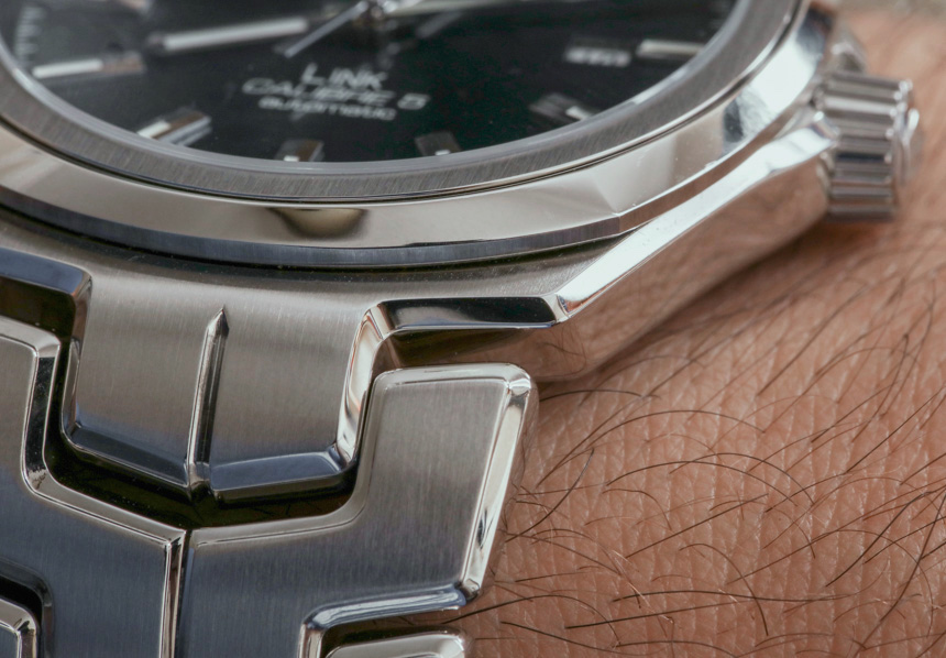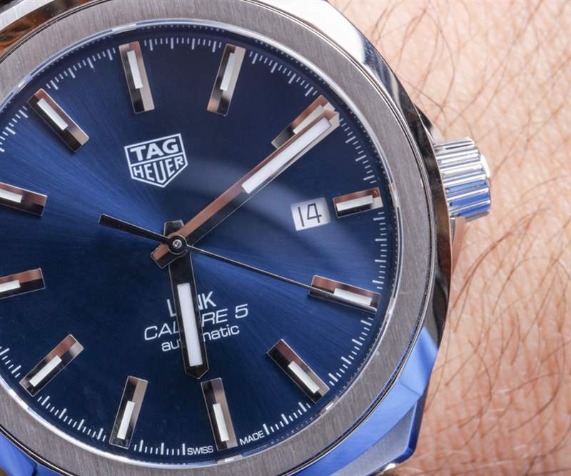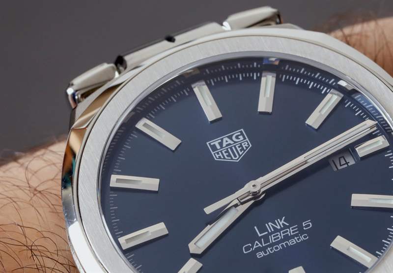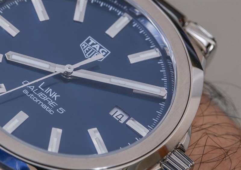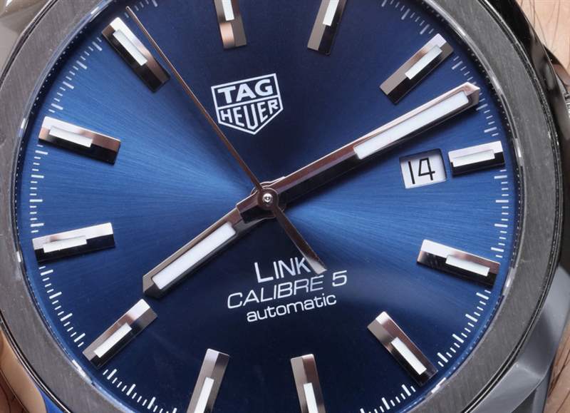 TAG Heuer(泰格豪雅)在 Link 中得到了有效的閃亮作為男士產品,在許多方面,我想不出太多其他真正現代的男士正裝商務手鏈手表,它們如此大膽閃亮,但仍然優雅有品位。時標和指針可以承受這么大,因為表盤的其余部分相對干凈整潔。然而,我希望日期盤的顏色與主表盤的顏色相匹配(盡管它適用于帶有黑色表盤的 Link 等型號)。