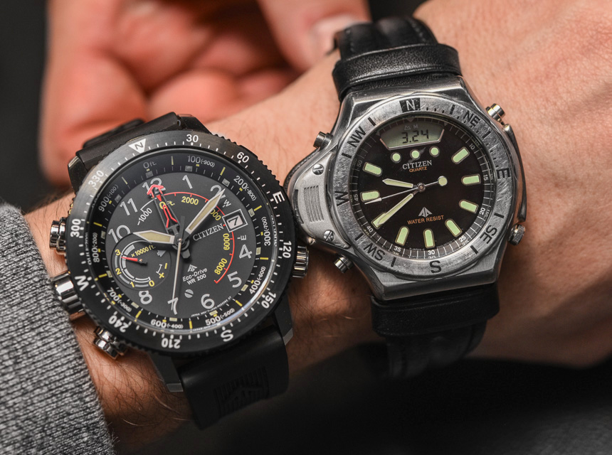 Citizen 盡最大努力使用設計技巧來幫助在視覺上減少 Promaster Altichron 的質量。不管他們怎么穿,這塊表還是很大的。我認為下一代 Altichron 應該更小。這基本上是智能手表的大小,而且您知道不需要電池或屏幕或 GPS。因此,如果機芯尺寸是保持 Altichron 如此厚實的原因,那么嘗試設計更小的機芯可能是有價值的。當然,我們知道西鐵城可以做到。這只是公司的優先事項。我似乎認為帶有指南針功能的纖薄 Promaster“導航表”有市場。