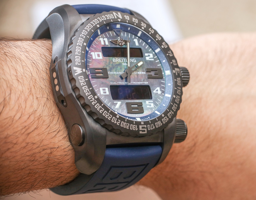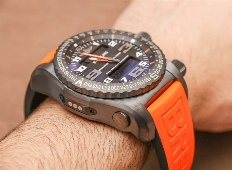 51 毫米寬和 21.6 毫米厚是一款適合大多數手腕定期佩戴的鐘表野獸。表殼采用高級鈦金屬制成,重量不大,約 144 克(實際重量取決于您是佩戴在配套的鈦金屬表鏈還是橡膠表帶上)。話雖如此,除非你真的很喜歡這種尺寸和感覺,而且你可以穿著普通的休閑裝來摘下這款手表,否則百年靈緊急情況 II 將主要用于“周末戰士裝”,或者在可用時用于嚴肅的冒險用途PLB 功能被認為是有用的。