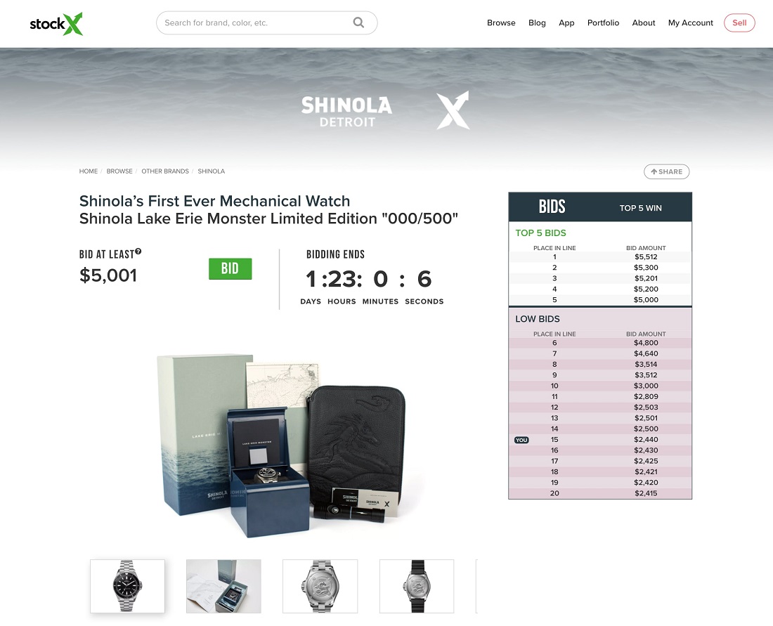StockX 希望他們的手表銷售和數據平臺將被制表商用于首次推出產品,就像他們第一次與總部位于密歇根州底特律的Shinola 一樣。StockX以其運動鞋買賣平臺而聞名,它已成功幫助主要鞋業制造商在其平臺上推出他們所謂的“IPO”(首次產品發售)產品。術語與股票市場 IPO(首次公開募股)的相似性是有意的。在 StockX 首次公開募股的手表產品將是 Shinola 的第一款機械手表,被稱為 Shinola Lake Erie Monster。
