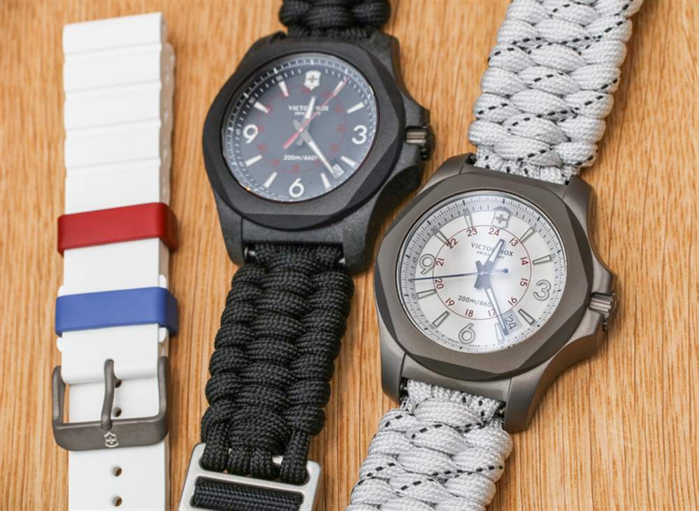 INOX Sky High 提供軍用風格的白色碳纖維表盤,單獨搭配帶斑點的白色傘繩表帶(包含對位芳綸纖維 – 顯然比鋼強 8 倍)。在盒子里,你還會得到一條白色橡膠表帶(帶有藍色和紅色表帶環,有點酷),以及一把帶有傘繩附件的限量版小型瑞士軍刀。根據 Victorinox 的說法,我對這個系列的唯一抱怨是無法真正幫助的。基本上它與傘繩帶的底面是黑色織物而其余部分是白色的事實有關。這并不可怕,但如果搭配白色會更好。