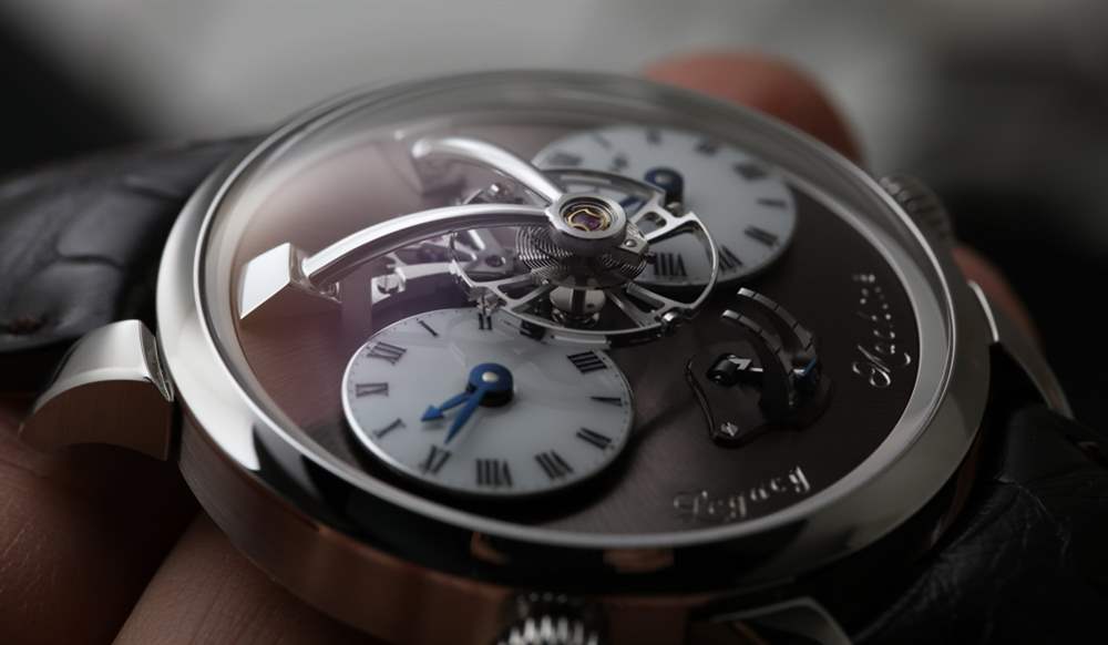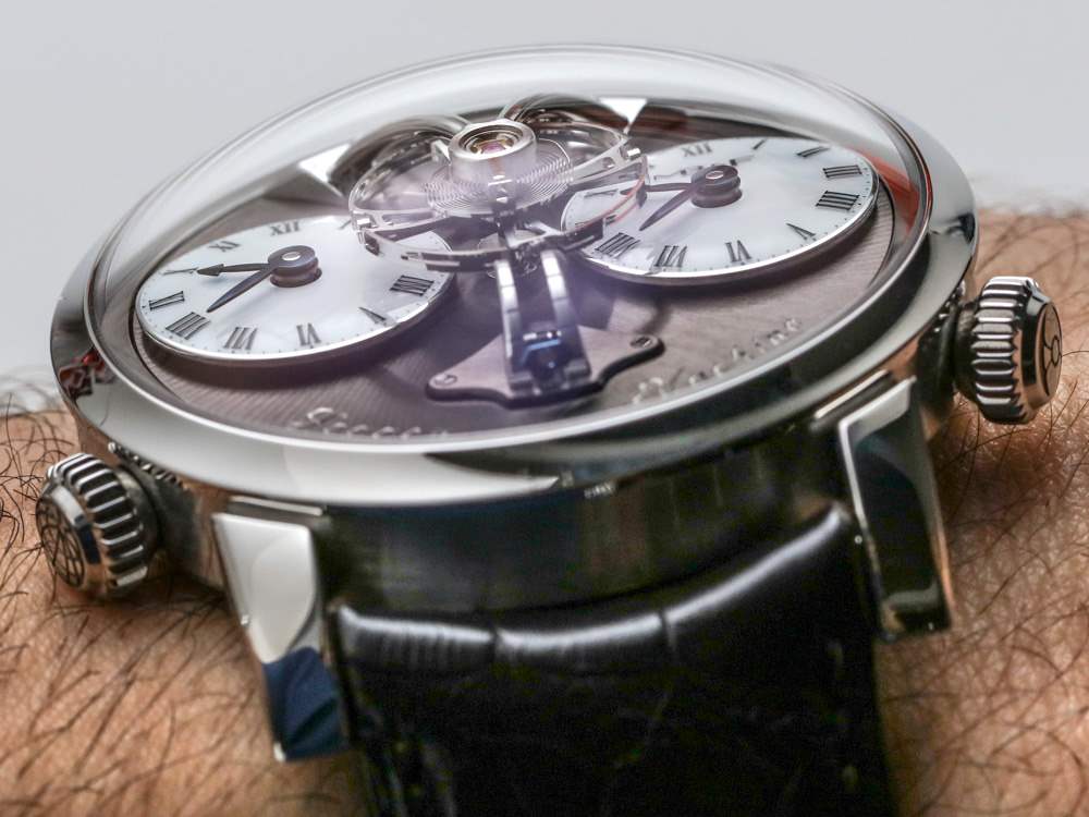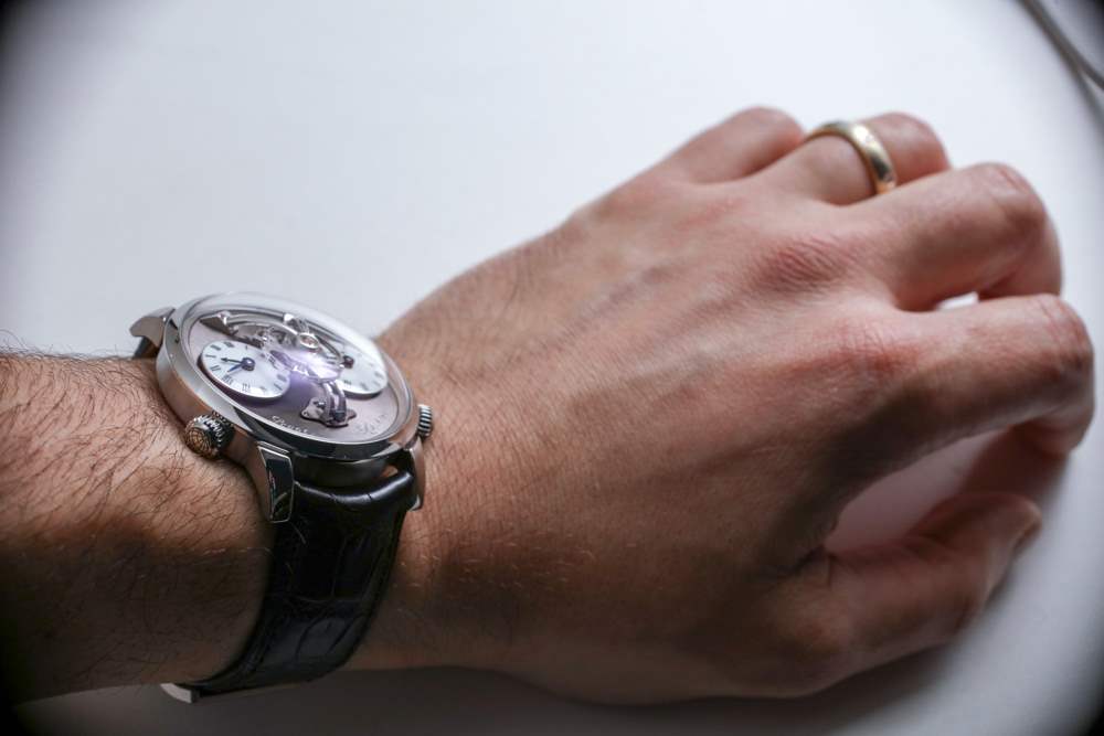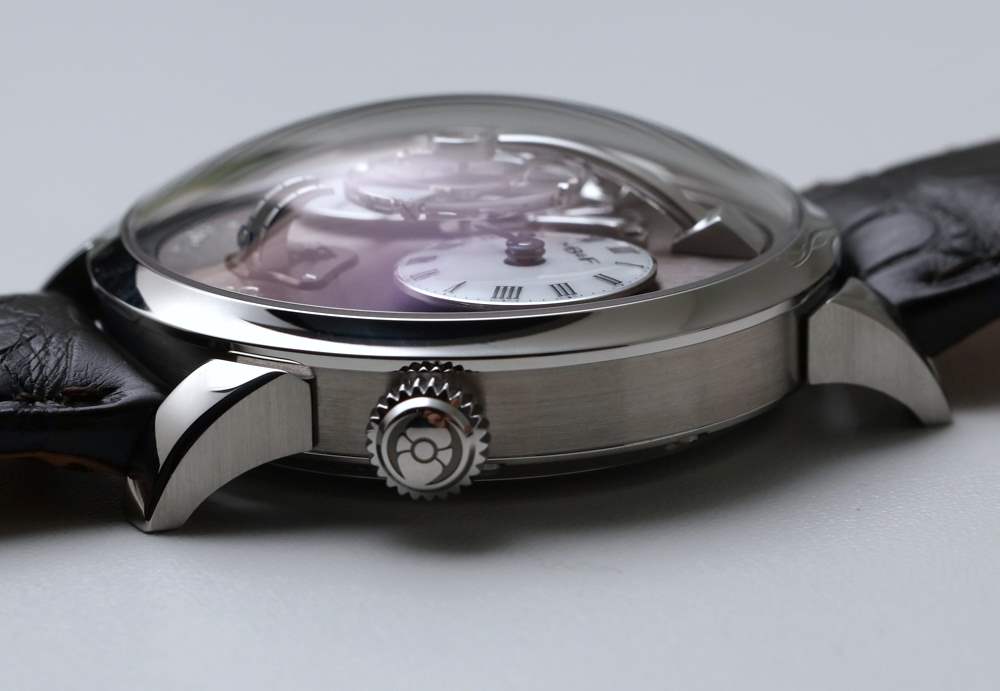 MB&F LM1 一直以來(lái)我最喜歡的功能之一是“垂直”線性動(dòng)力儲(chǔ)備指示器。與表盤上的傳統(tǒng)指針不同,小臂作為動(dòng)力儲(chǔ)存指示器在表盤上垂直上下移動(dòng)。時(shí)間通過兩個(gè)表盤顯示。每個(gè)都或多或少是獨(dú)立的,可以根據(jù)您的喜好使用位于表殼兩側(cè)的兩個(gè)專用表冠之一設(shè)置為分鐘。它是一款非常方便的兩時(shí)區(qū)時(shí)計(jì)。