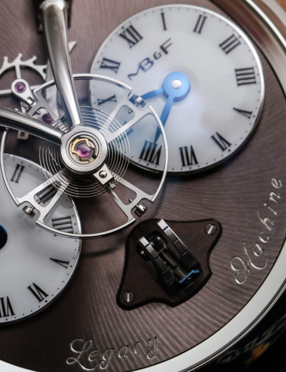 清晰易讀的白漆表盤上的藍(lán)鋼指針與金屬棕色表盤相得益彰。棕色鱷魚皮表帶很好地完成了棕色主題。MB&F LM1 Final Edition LM1 的一個(gè)新設(shè)計(jì)元素是堅(jiān)固的雙臂橋的設(shè)計(jì),用于固定擺輪。橋臂的設(shè)計(jì)發(fā)生了變化,每個(gè)橋臂都帶有一個(gè)完全拋光的圓形臂,而不是早期 LM1 手表中更現(xiàn)代和建筑的東西。然而,這種特殊的橋設(shè)計(jì)對(duì)于 MB&F(僅 LM1 系列)來(lái)說并不新鮮,并且可以在一些 LM2 和 LM1.1 手表中看到。它只是幫助 MB&F LM1 最終版看起來(lái)盡可能優(yōu)雅。