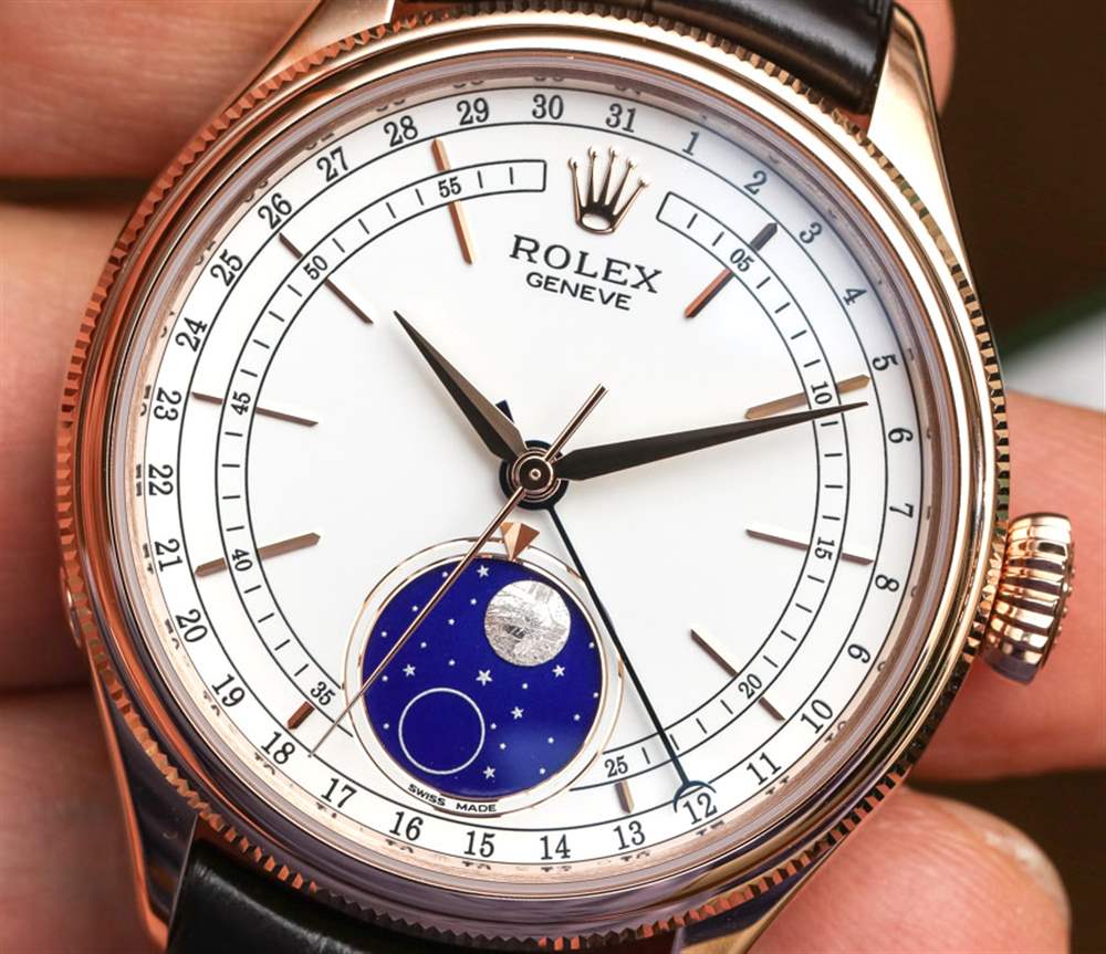 話雖如此,月相指示器是許多精美鐘表中集成的美麗功能,因此,我們在更小眾的奢侈鐘表世界中看到了很多,這些鐘表以情感驅動的美學推銷自己。我必須說,我不會猜到勞力士會對這種復雜功能有多大興趣,勞力士的目標是制造出可以相對大量銷售的高品質(zhì)手表。我的意思是,在我看來,勞力士切利尼月相是我有生之年見過的第一款絕對小眾的勞力士正裝手表。此外,勞力士似乎是為了吸引其他品牌的注意力而做出的具體嘗試,許多人認為勞力士很久以前就停止關注了。