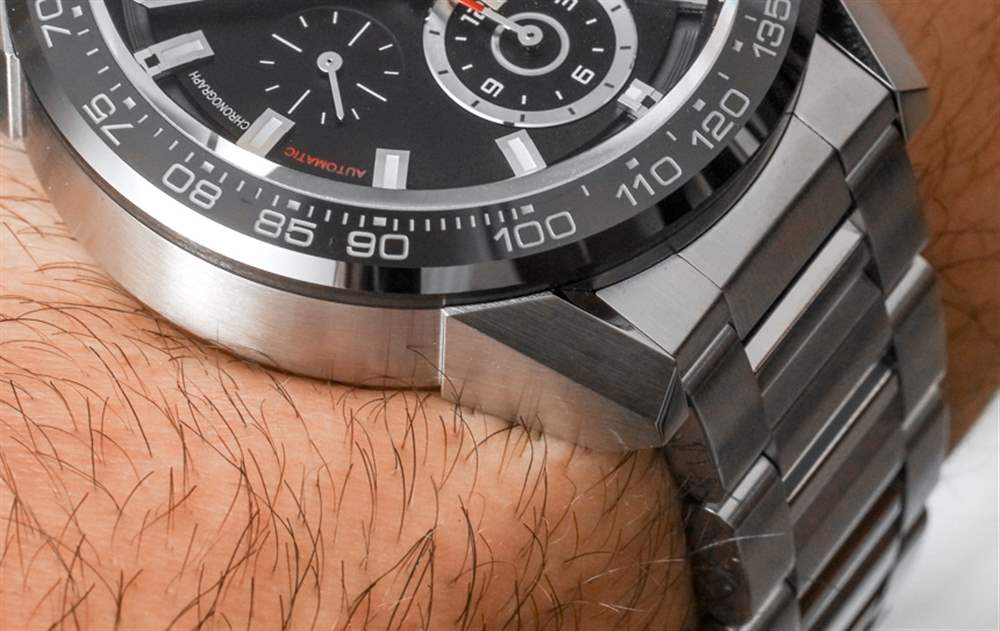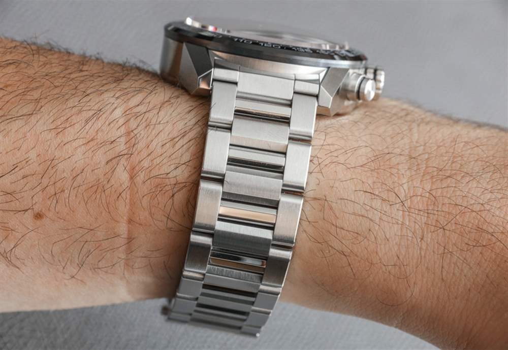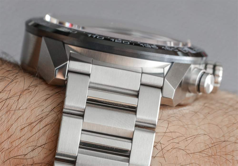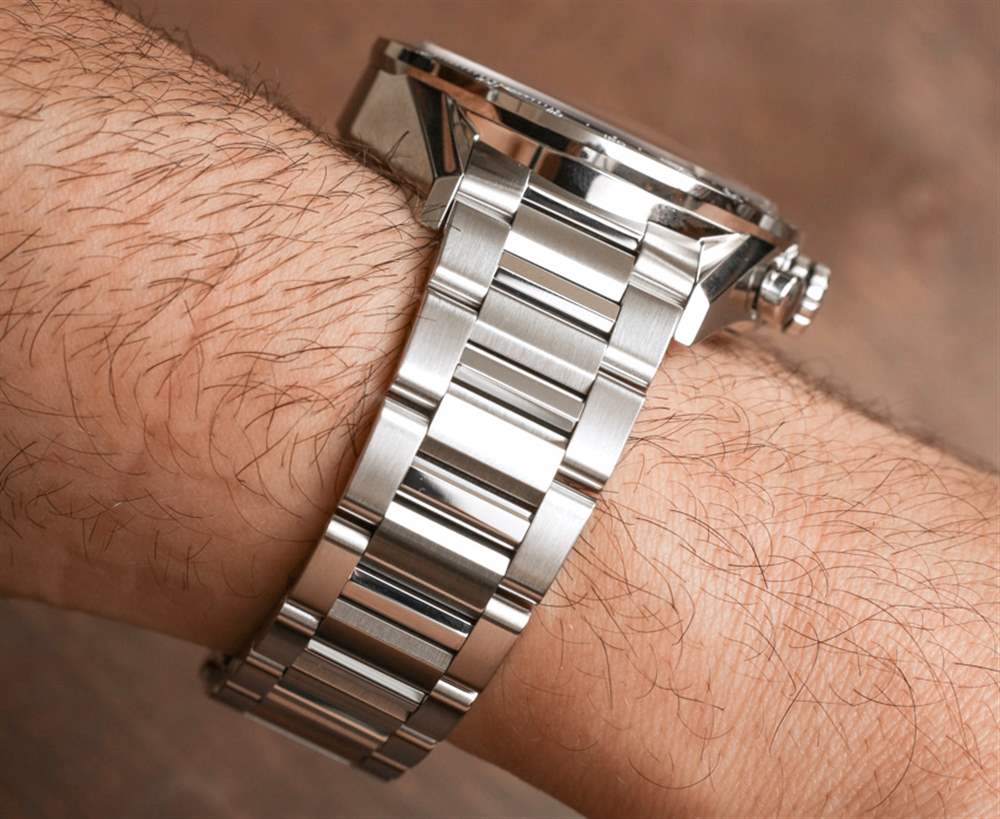 直接看手表時(shí),與略顯柔和的 1887 相比,Heuer 01 版本的 Carrera 在線條上更加棱角分明,更具侵略性。這有點(diǎn)像將蘭博基尼的美學(xué)與法拉利進(jìn)行比較。需要指出的是,TAG Heuer Carrera 1887的表鏈實(shí)際上比Carrera Heuer 01的表帶寬了一點(diǎn),只是稍微改變了美學(xué)。話雖如此,這兩款手表都具有三鏈?zhǔn)嚼z和拋光精鋼表鏈,折疊式展開(kāi)式表扣在設(shè)計(jì)上非常相似。但同樣,所有部分都是獨(dú)一無(wú)二的。