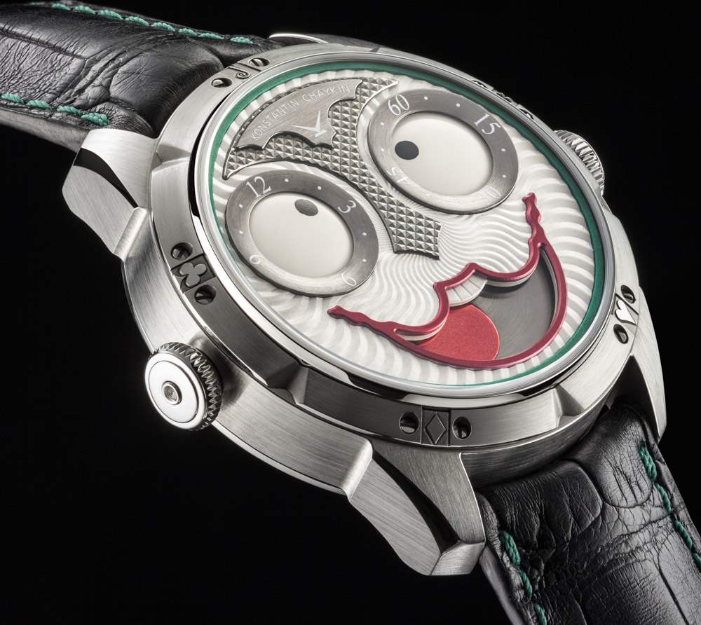 俄羅斯鐘表制造商康斯坦丁·柴金 (?Konstantin Chaykin?) 說(shuō)話輕聲細(xì)語(yǔ),非常聰明,他的作品總是能引起我的興趣。2017 年,他最新的手表是限量版,全是關(guān)于奇思妙想(和蝙蝠俠惡棍)的。Konstantin Chaykin Joker 是對(duì)著名的同名蝙蝠俠惡棍的一個(gè)典型且相對(duì)友好的致敬。這款腕表的意義不僅在于提醒腕表收藏家小丑角色,還在于使用他的主題來(lái)展示一款具有約 20,000 種不同“面部表情”的“面部”的時(shí)計(jì)。