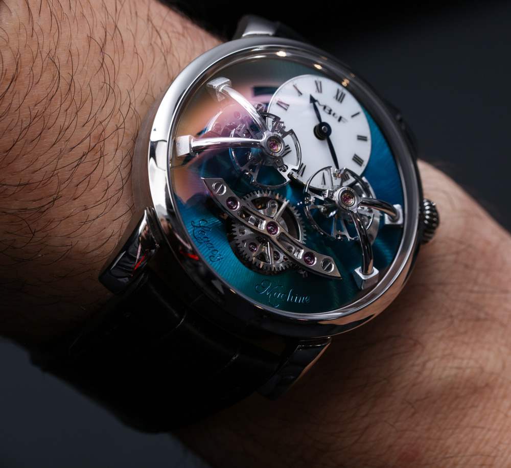 作為“現(xiàn)代傳統(tǒng)”制表的一種表達(dá)方式,它是男性化的,但完全是關(guān)于佩戴者佩戴“看看我”的鐘表藝術(shù),幾乎沒有其他東西能像 MB&F Legacy Machine 2 一樣呈現(xiàn)出來,這個鈦金屬版本它的藍(lán)色/綠色表盤是該系列的華麗和受歡迎的補(bǔ)充。