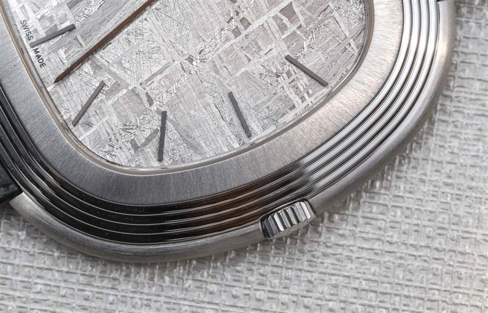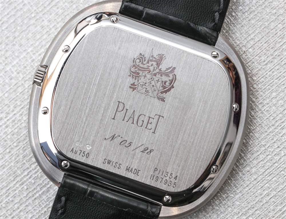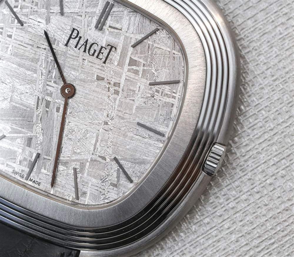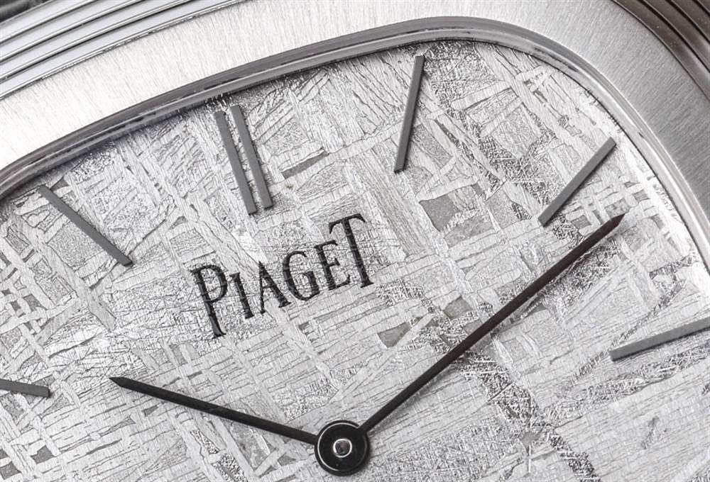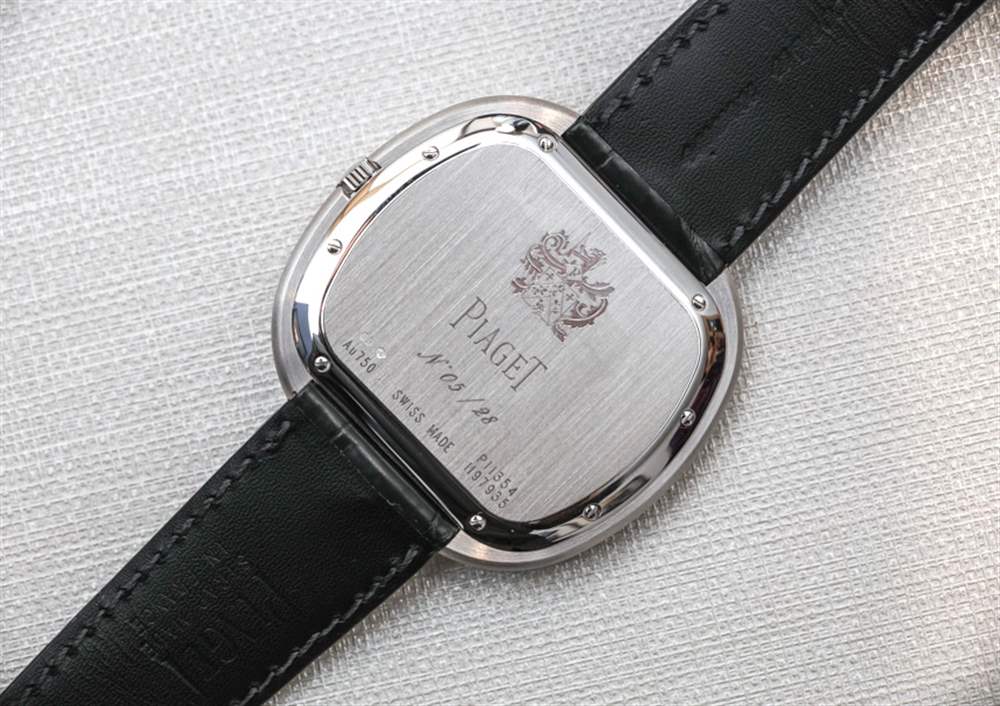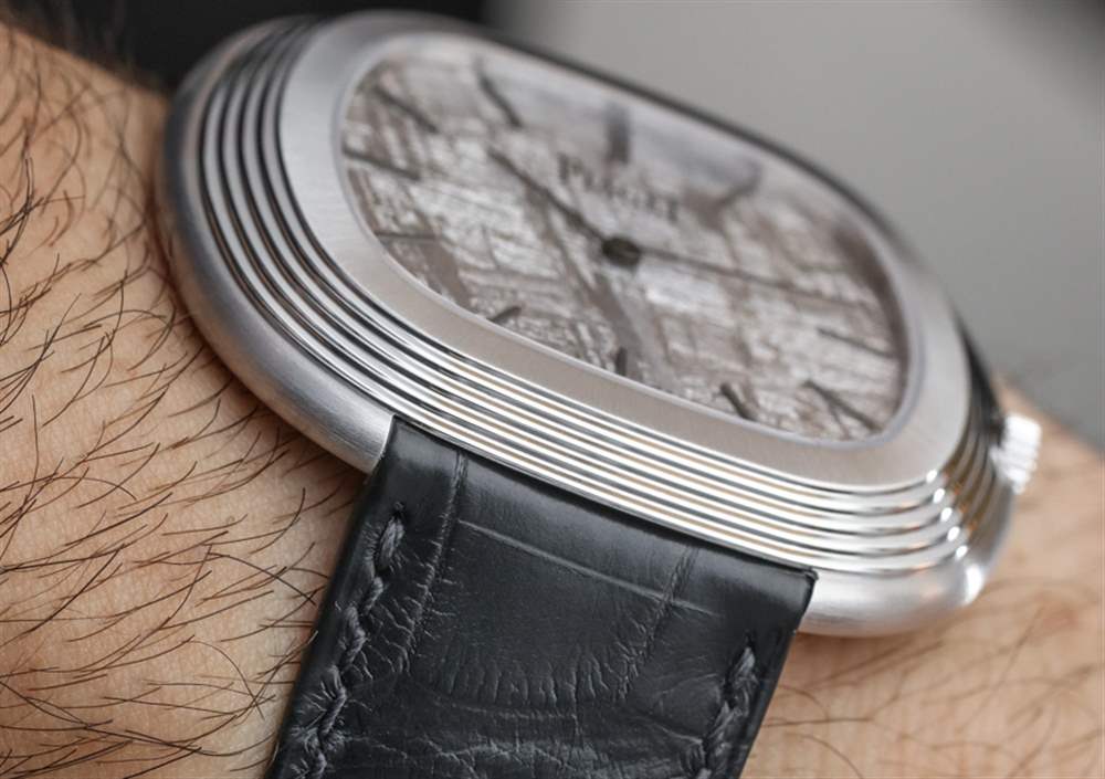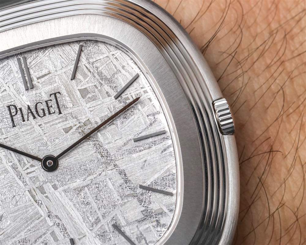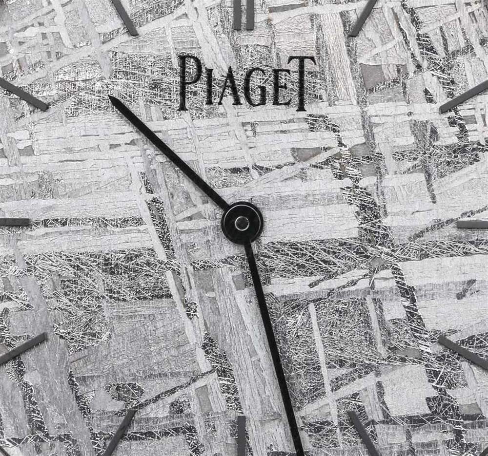 在我看來,天然淺灰色隕石表盤很漂亮。Piaget 標志印在藍寶石水晶的背面,18k 白金指針(啞光黑色)提供時間,甚至不提供秒數(shù)。這件作品在精神上確實是一款正裝手表,盡管您每次看到它時不一定都會以這種方式出現(xiàn)。但是,您可以從邏輯上確定,如果它不是運動手表或其他類似的東西,那么它只能是一件事……。正裝手表。