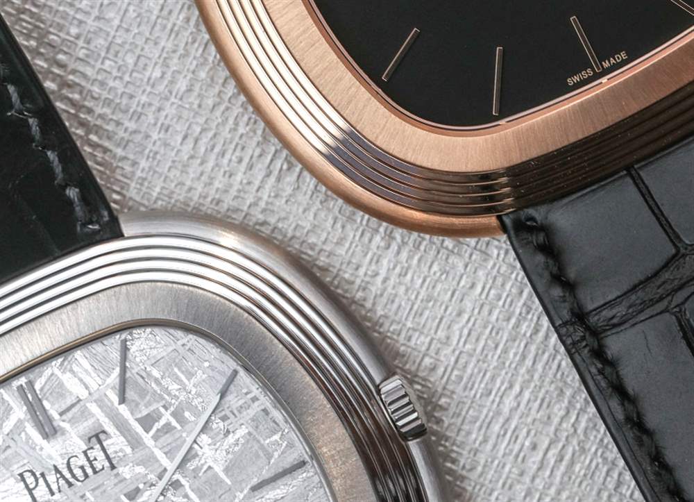 2015 年的最初限量版“Black Tie”型號在 18k 白金表殼中配備有光澤的黑色表盤。對我來說,這有點過于簡單了,盡管它確實享受了它應有的愛和感情。2017 Piaget Vintage Inspiration 腕表采用 18k 玫瑰金表殼搭配黑色表盤和相配的玫瑰金時標——與 2015 年沒有時標的型號相反——或者我最喜歡的有 18k 白金表殼和美麗的天然白色隕石表盤(和標記)。易讀性確實對我有用。