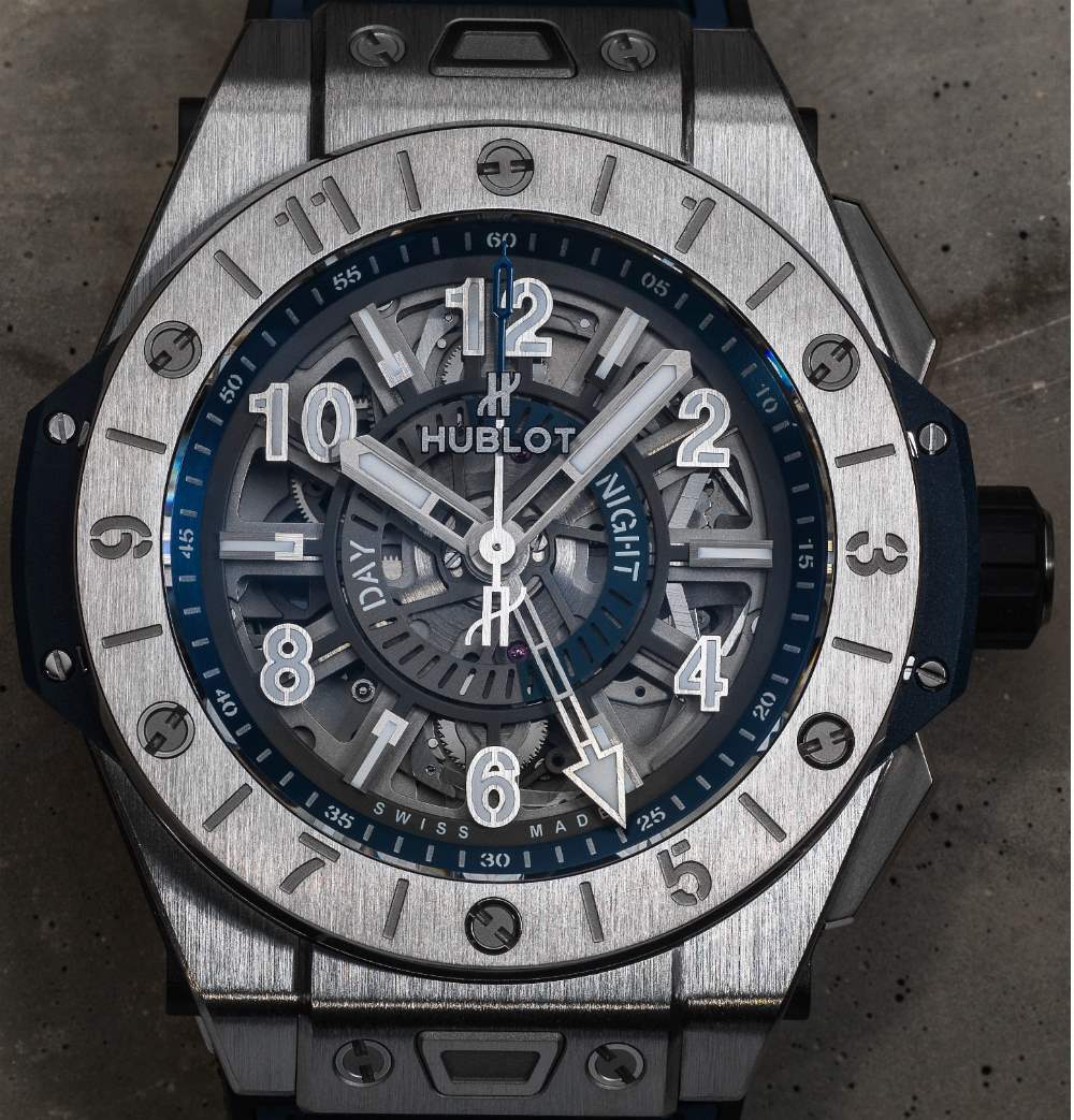 這是一款宇舶 Big Bang 45 UNICO,aferall,因此幾乎可以保證表盤的鏤空結構可以看到機芯。它的強調色是無煙煤灰色和深藍色。再一次,我們看到藍色是過去幾年新手表的強勁趨勢。表殼尺寸為 45 毫米寬和 15.85 毫米厚,??防水深度為 100 米。由于它是宇舶 Big Bang UNCO 表殼,它具有廣受好評的“一鍵式”系統,用于拆卸和更換表帶(本系列中為橡膠)。