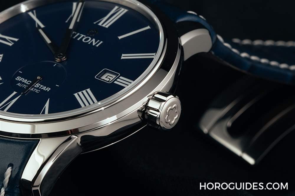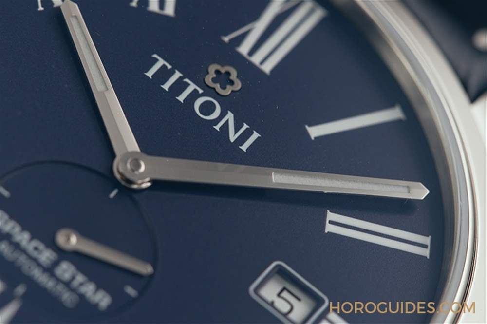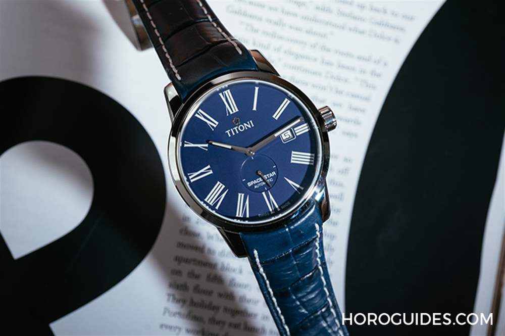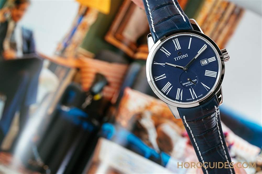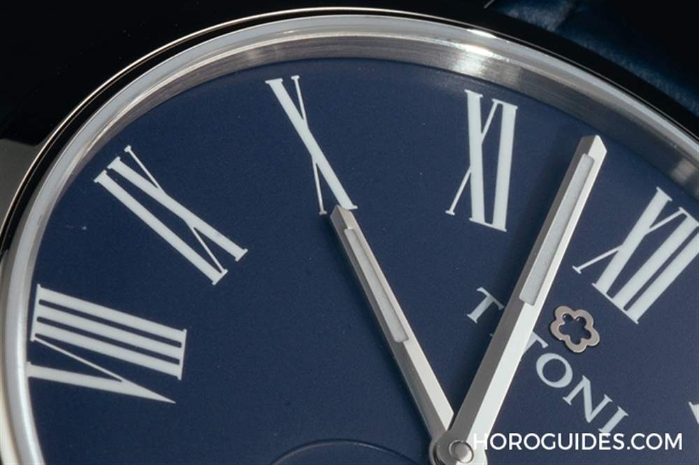 穿脫自如搭配的是鑲嵌梅花造型品牌Logo的折疊扣,40mm的尺寸大小適中你一定撐的住,套上西裝手腕一轉就是專業感,卷起袖子藍面到藍帶的齊一性與精致度,更看的出你的小講究??磳ρ劬蜁膭?,打開錢包又不心痛,買一只實戴的表,從TITONI中選那有那么難?