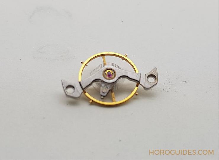 橫跨式擺輪橋板,慣性螺絲微調擺輪,以4顆螺絲微調走時快慢。