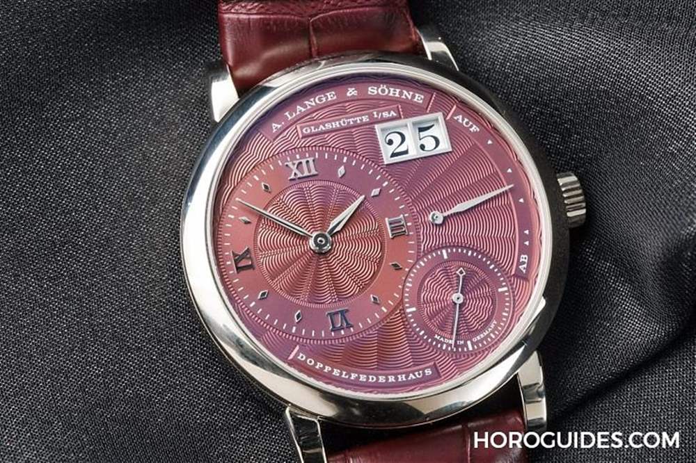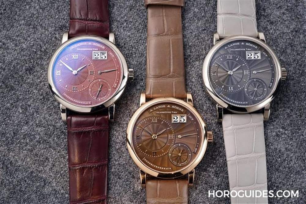 Little Lange 1推出的全新三色,包括灰、紫、棕三色,裝飾手工機雕紐索紋,表徑36.8mm,搭載L121.1 手動上鏈機芯,其中朗格第一次推出的紫色表盤為專賣店限定款,限量100只。參考價EUR 32,500。詳細介紹看這里