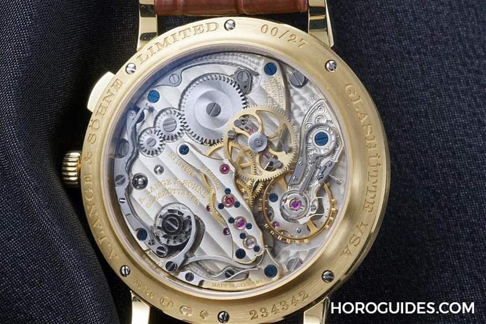 為了紀念于2017年1月過世的公司創辦人Walter Lange而推出的1815系列新款,40.5mm表徑、6點鐘小秒針,特別的是中央獨立的跳秒秒針,透過2點鐘位置的按鈕啟動、停止。有18K白金(145只)、18K玫瑰金(90只)和18K黃金(27只),參考價EUR 47,000。還有限量一只準備作為慈善拍賣的不銹鋼款。詳細介紹看這里