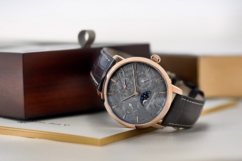 Frédérique Constant在這次的「Only Watch 2017」中維持著品牌一貫腕表圓渾、風格平實的特色,配上FC-755自動上鏈機芯,擁有萬年歷功能。而表盤上萬年歷的小表盤采用平面式設計,令表盤看上去更為簡單。但重點不在這,因為這都可以在品牌旗下腕表中看到。既然是世上獨一無二的腕表,F(xiàn)rédérique Constant便把隕石材質打造表盤,以呼應「Only」這個主題。