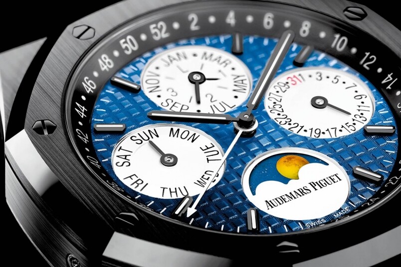 愛彼Royal Oak系列的受歡迎程度一向通殺,這次愛彼參加「Only Watch 2017」的款式,可說是使出了必殺技!推出Royal Oak萬年歷款式,表盤上飾有經(jīng)典的大格紋,配以近年大熱的深藍配色,再襯上極有型的全黑表身表帶造型,這全黑設計其實是陶瓷材質打造。這經(jīng)典系列加上必殺配色,表背再刻有「UNIQUE PIECE」字樣,話我知,男士們點樣可以覺得佢唔靚?唯一可惜,就是我無幾千萬上場競投這獨有款式……