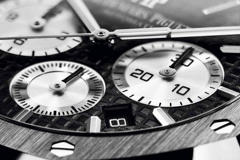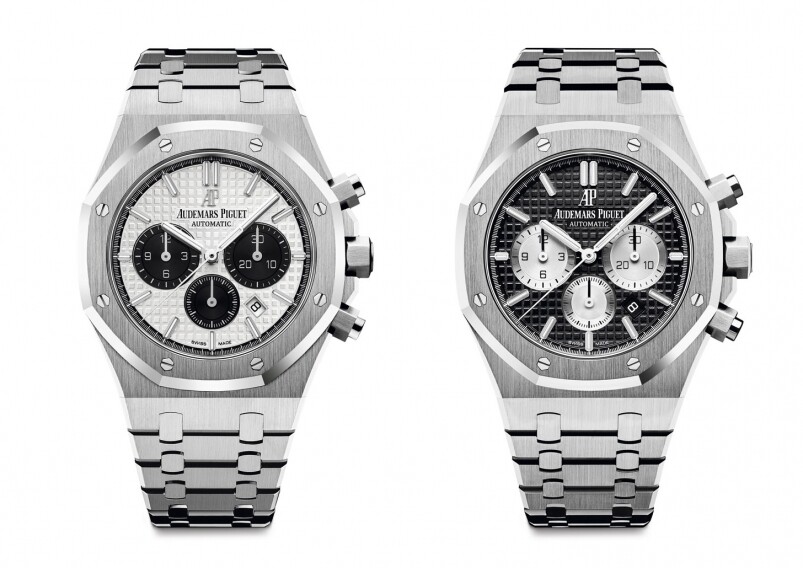 愛彼的招牌作Royal Oak今日無人不識,八角形表圈自成一家,系列推出多年,早有不同顏色的表面可供選擇。今年品牌碰巧推出一雙panda dial表款,同樣是黑白色的表盤及計時副盤組合,表面另飾有「Tapisserie」格紋,細節上豐富一點。