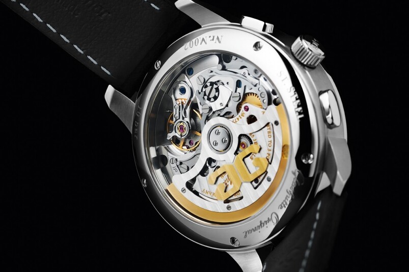 Calibre 37-01 自制計時機芯可以從透明表背欣賞,具備飛返機制與12 小時計時器,而機芯的調節不是以調節器調校,卻是利用平衡擺輪上的四顆金質螺絲來進行,就算是長時間連續運行下,一樣有極高的精確性。這一枚腕表從里到外都是一枚極之用心的作品,在優雅之余,卻同時帶來令人著迷的吸睛位置,實在是值得入手的作品。