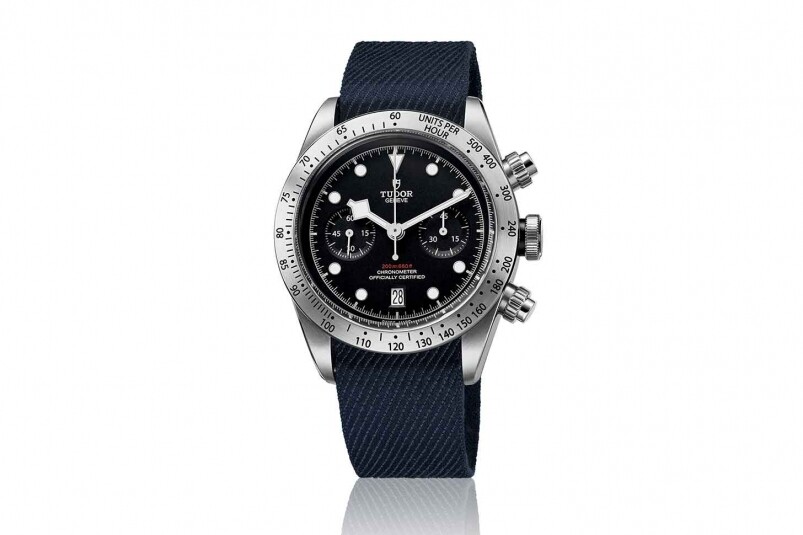 而無(wú)論是購(gòu)買(mǎi)鋼帶款抑或是皮帶款式,Tudor都會(huì)為你多配一條表帶,Black Bay Chrono配搭的是深藍(lán)色牛仔布風(fēng)提花織紋表帶,帶來(lái)復(fù)古感覺(jué)以外的味道,提供更悠閑型格的味道,一枚表有多種配襯方法,令你好像有多一枚腕表的新鮮感。就算是一條織紋表帶也不要少看,因?yàn)檫@表帶是由TUDOR設(shè)計(jì), 再委托法國(guó)圣艾提安(St-Etienne)地區(qū)一家擁有150年歷史的家族企業(yè)制作,采用十九世紀(jì)的提花織機(jī)編織而成,你在外面絕對(duì)不容易找到這種質(zhì)素的織紋表帶。