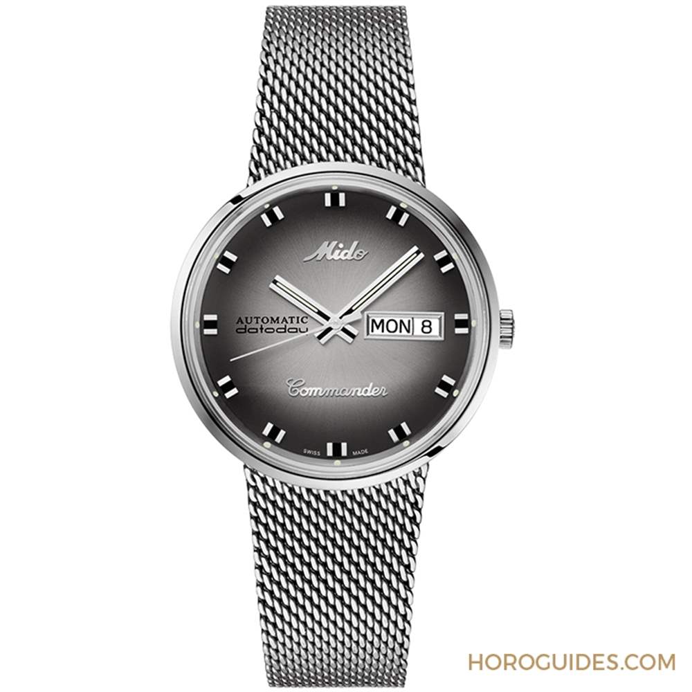 Commander是MIDO的旗艦系列,將法國聞名的艾菲爾鐵塔鋼鐵結構融會于表盤之上,自1959年問世以來早已風靡全球逾半世紀。而新款Commander Shade更結合1979年的版本,呈現當時漸層的太陽放射狀飾紋表盤,在色彩上更有獨到之處,透過黑銀雙色煙熏漸層展現漸進光影效果,并搭配米蘭鏈帶提點出濃濃時代韻味。實底蓋設計鐫刻著品牌原創標志,防水50米,除一體成形的米蘭鏈帶款,另推出PVD玫瑰金特別版,展現迷人風格。