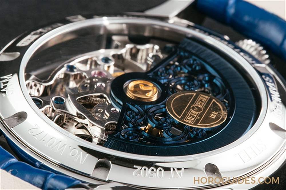 星恒系列尊爵版搭載了AT0502 陀飛輪機芯,提供40 小時動力儲存,每小時振頻達28,800次, 相較于一般陀飛輪多在21,600轉(zhuǎn),萬希泉采用高震頻的陀飛輪機芯。