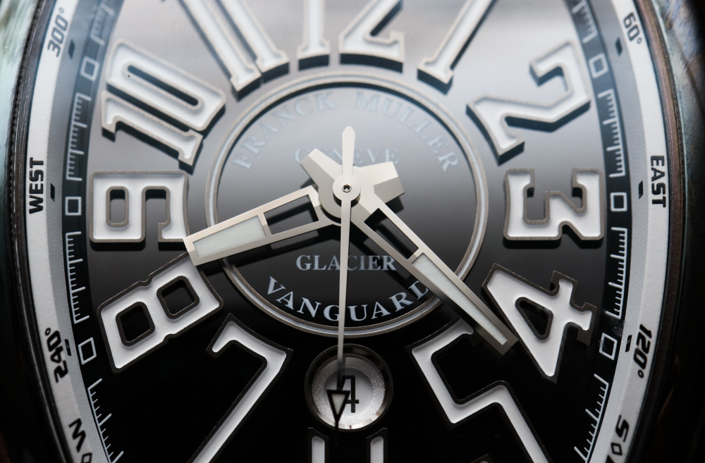 這些三指針 Franck Muller Vanguard 系列手表內部裝有 FM 0800 自動機芯,以 4Hz(28,800 bph)的頻率運行,動力儲存為 42 小時。我不相信這些是自產機芯(Franck Muller 確認這些是經過修改的瑞士 ETA 機芯),但在其他 Franck Muller 手表中,它們當然配備了自己的機芯。機芯提供時間和日期(顯示在 6 點鐘位置)。沒有展覽底蓋,我想手表上應該有。這比在機械結構不那么復雜的手表上寫“復雜功能大師”更有意義。Franck Muller Vanguard Glacier 本身并不是限量版,但它是一款單獨編號的手表,序列號位于底蓋上。