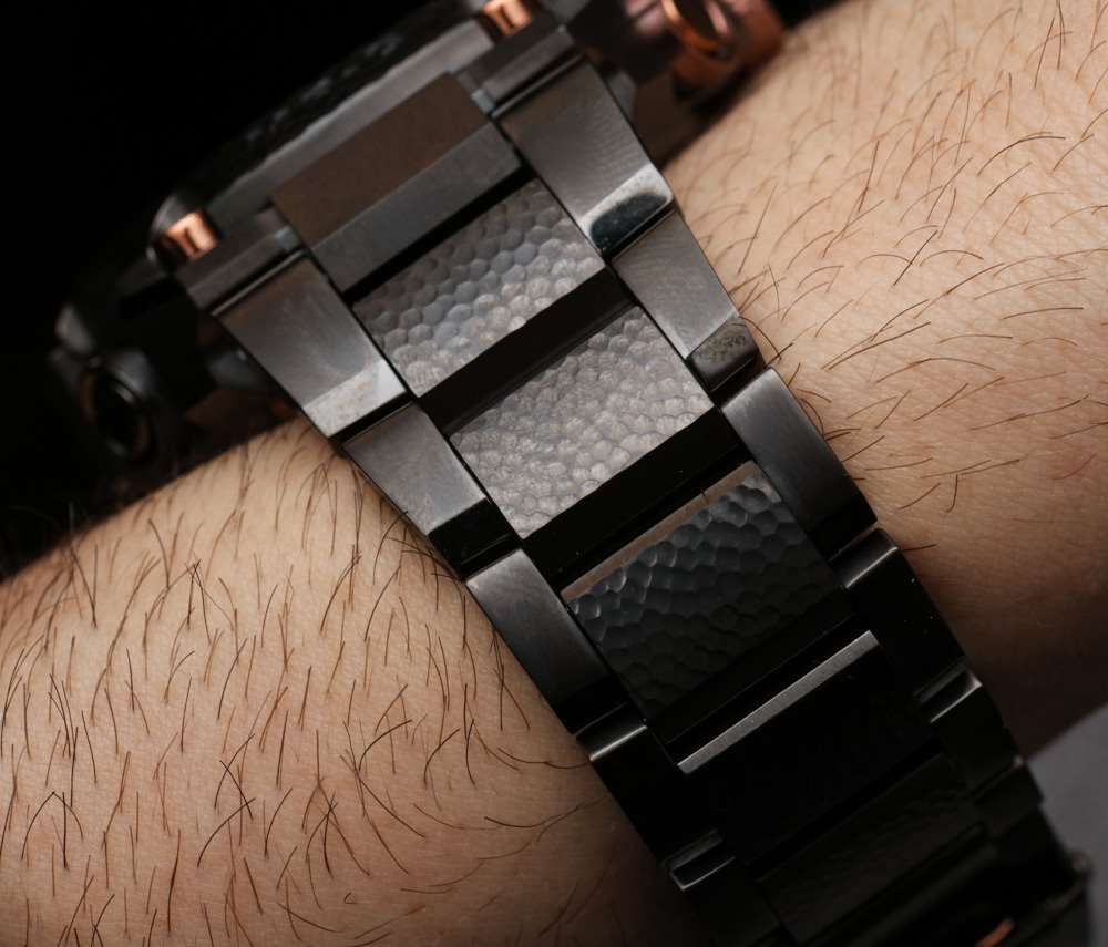 卡西歐將這種錘擊金屬技術稱為“ tsu-i-ki ”,它已被用于各種類型的日本傳統工藝以及其他地方的類似形式。作品由金工匠淺野美厚先生在日本京都完成。用小錘子敲打金屬是無需沖壓或機械加工即可使其以特定方式成形的唯一方法之一——因此我們今天甚至在定制汽車制造中看到它。打磨金屬的有意有機外觀很有趣,總的來說,鈦和銅合金手表具有現代外觀與古老魅力的獨特結合。如果蒸汽朋克是具有年代感的奇幻老科技,那么這就是電路朋克, 手表看起來就像動漫科幻小說中的半復古風格。也許“電路朋克”這個詞會流行起來……