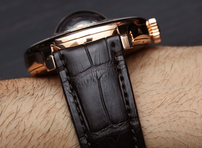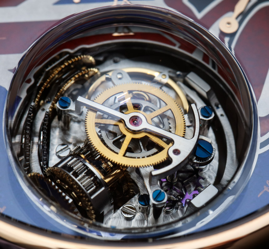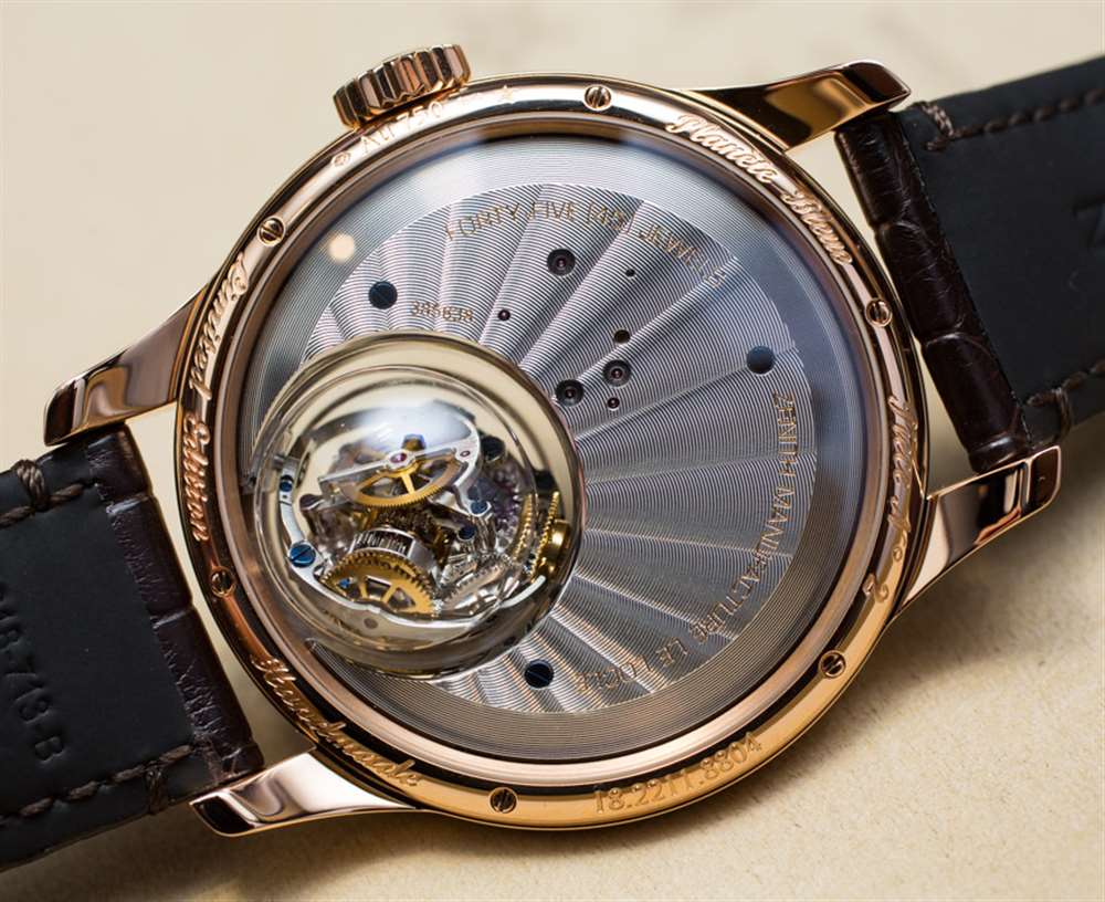 18k 玫瑰金表殼寬 45 毫米,表殼厚 14.35 毫米,但在安裝“零重力”調(diào)節(jié)系統(tǒng)的藍(lán)寶石水晶“氣泡”處厚度達(dá)到 21.4 毫米。這個(gè)概念很有趣,玩起來(lái)很有趣。你擁有的是一個(gè)高度復(fù)雜的球形調(diào)節(jié)系統(tǒng),由設(shè)計(jì)在萬(wàn)向架上的擺輪和擒縱機(jī)構(gòu)組成。從底部開(kāi)始加重,其理念是無(wú)論您將手表朝哪個(gè)方向移動(dòng),調(diào)節(jié)機(jī)構(gòu)都保持直立。從理論上講,這是為了提高準(zhǔn)確性。戴上手表,轉(zhuǎn)動(dòng)手腕,玩起來(lái)也很有趣……廣告留言廣告信息結(jié)束