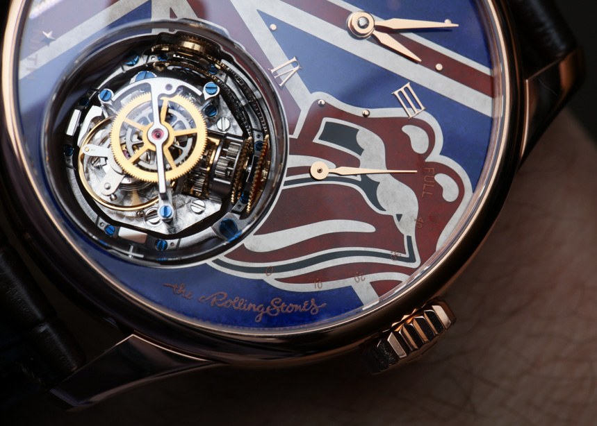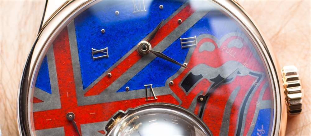 帶有滾石樂(lè)隊(duì)的標(biāo)志、張開(kāi)嘴巴的標(biāo)志和英國(guó)國(guó)旗,每個(gè)表盤(pán)都是手工琺瑯,在指針和索引標(biāo)記上涂有金色貼花。如果您真的很喜歡滾石樂(lè)隊(duì),那肯定是一個(gè)很酷的概念。