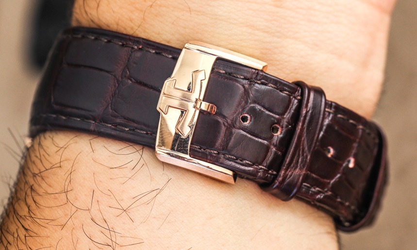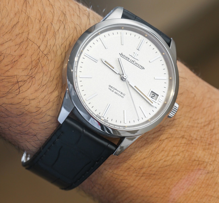 戴在手腕上,積家地球物理真秒表是一款39.6毫米寬的中型腕表,外形帥氣。得益于 11.7 毫米的表殼厚度和粗壯的表耳設計,它不會穿得太小。該表殼防水深度達 50 米,并且具有非常漂亮的大部分拉絲和一些拋光表面組合。貼合度和表面處理都非常好,符合您對積家時計的期望。