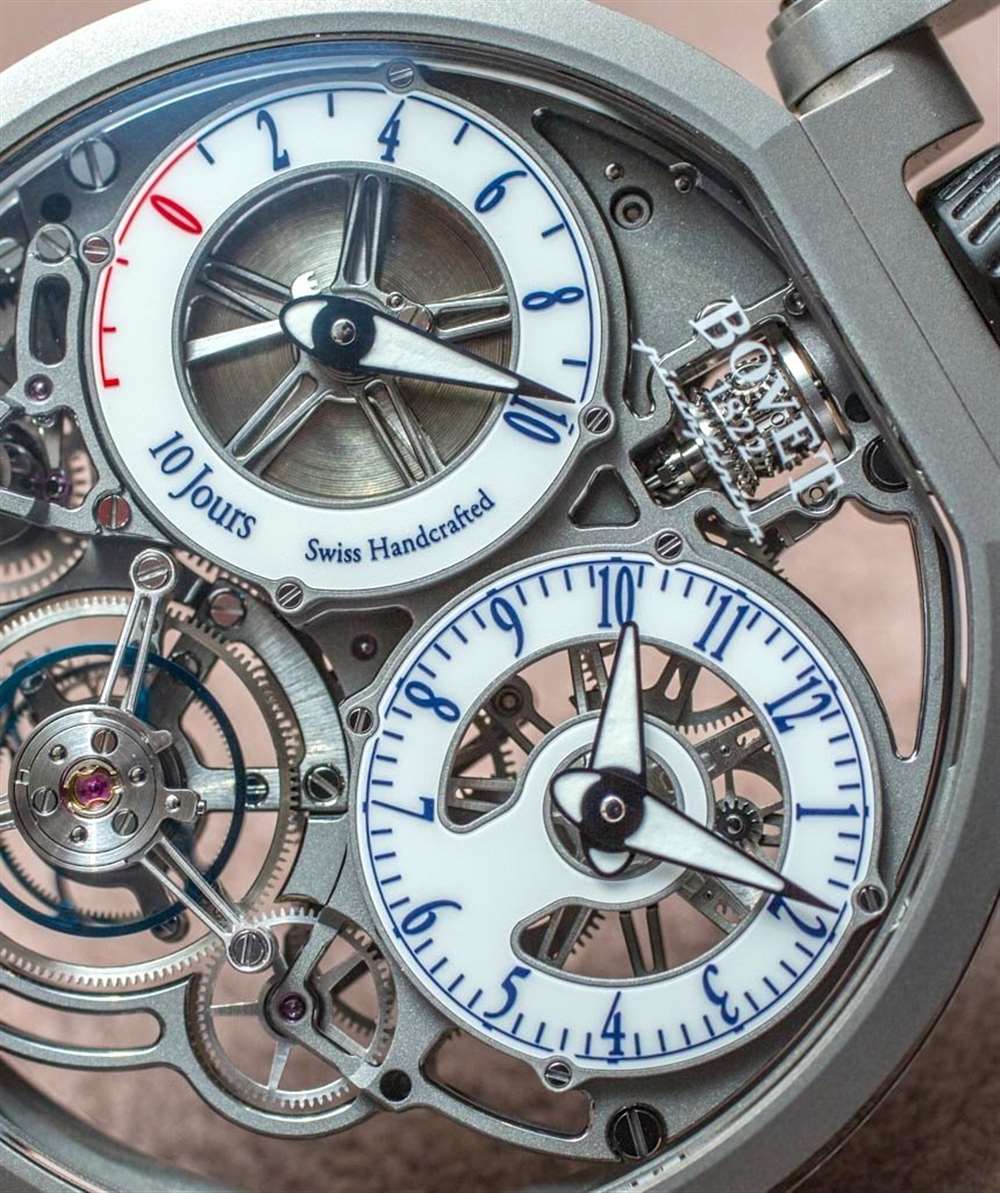 機(jī)芯結(jié)構(gòu)和鏤空是純粹的“高級(jí)鐘表學(xué)”,具有一系列精美而現(xiàn)代的裝飾細(xì)節(jié)和修飾。我知道 Bovet 時(shí)計(jì)的設(shè)計(jì)并不適合所有人,但我仍然相信大多數(shù)鐘表愛(ài)好者都能輕松地支持這些手表的技術(shù)和技巧。此外,如此顯眼的大型飛行陀飛輪腕表以及涂有明亮 SuperLumiNova 夜光涂層的指針(請(qǐng)注意,在這些原型型號(hào)上,指針是手繪的,因此流明看起來(lái)不均勻)的頻率有多高。