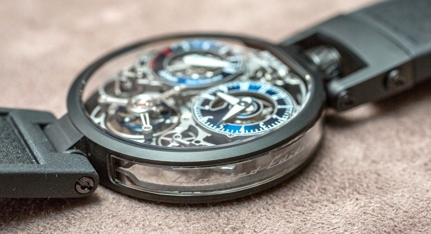 Bovet Pininfarina OttantaSei 10-Day Tourbillon 手表也很輕——尤其是兩個(gè)鈦金屬版本。我必須承認(rèn),考慮到 12 點(diǎn)鐘位置的“蝴蝶結(jié)式”表冠位置,它佩戴起來(lái)非常時(shí)尚,但并不不舒服。Bovet 聲稱(chēng)即使是黃金表殼也僅重 51.66 克(不含表帶)。整個(gè)設(shè)計(jì)的重點(diǎn)是讓 Bovet Pininfarina OttantaSei 10 天陀飛輪看起來(lái)輕盈……輕盈。