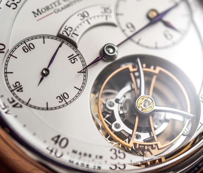 這款 Moritz Grossmann 陀飛輪中用于暫停擺輪運行的專利系統被稱為“Stopp Second”系統,它使用精細的“人發彈性刷”來停止擺輪。為什么,再次,你想暫時暫停擺輪?這使佩戴者可以更精確地設置時間,因為沒有停秒功能,當您拉出表冠時,秒針會繼續走動。雖然在更傳統的手表機芯中并不少見,但絕大多數陀飛輪手表都沒有停秒系統。在基于陀飛輪的機芯中加入停秒系統,使用戶可以更精確地設置時間。