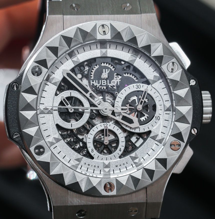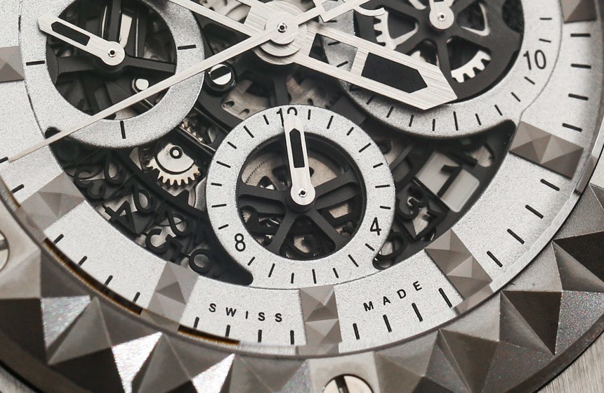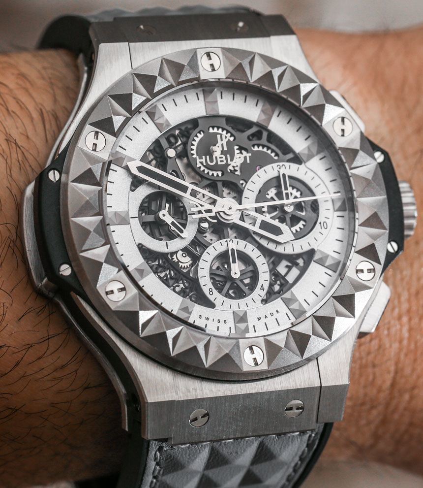 這是Big Bang“Aero Bang”的原因是部分鏤空表盤。Aero Bangs 就是采用這種表盤樣式的 Big Bang 手表。它的外觀很有趣,與標(biāo)準(zhǔn)的 Hublot Big Bang 相比并沒(méi)有好壞之分,但確實(shí)提供了一些獨(dú)特的造型和有趣的細(xì)節(jié)。所以我的問(wèn)題是,如果你喜歡 Big Bang,你是否也喜歡這個(gè)有趣的 Depeche Mode 模型?或者,如果您不喜歡標(biāo)準(zhǔn)的 Big Bang,表帶和表圈上的金字塔式“Clos du Paris”圖案是否給了您對(duì)整體手表設(shè)計(jì)感興趣的新理由?
