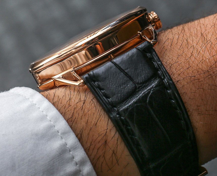 De Bethune DB25QP 萬年歷腕表寬 44 毫米,厚僅 11.20 毫米,戴在手腕上非常舒適。較短的表耳使表殼適合多種尺寸的手腕,黑色鱷魚皮表帶光滑柔軟,緊貼您的手臂。是的,在很多方面,DB25 看起來更講究——尤其是在這種萬年歷表中,但我仍然認(rèn)為一個認(rèn)真的手表人可以使用 De Bethune DB25QP 萬年歷——尤其是在有深色表盤選項的情況下,比如這個型號比較隨意的情況。其實,說到De Bethune,你不需要將這些表與任何東西“搭配”。在我看來,像這樣生動美麗有趣的手表可以搭配任何東西,因為它們所做的聲明比簡單地成為你“佩戴”的東西要響亮得多。