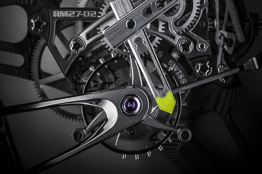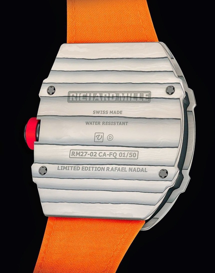 Richard Mille RM27-02 Rafael Nadal 手表同時使用碳纖維和新型石英絲材料,這兩種材料均由瑞士 NTPT(North Thin Ply Technology)創造。這些材料是 NTPT 為高性能賽車和工業用途生產的材料的改良形式。這些石英和碳材料旨在非常輕便且非常堅固,同時還能抵抗一系列環境危害,進一步設計時考慮到了 Richard Mille 的表面“視覺效果”。