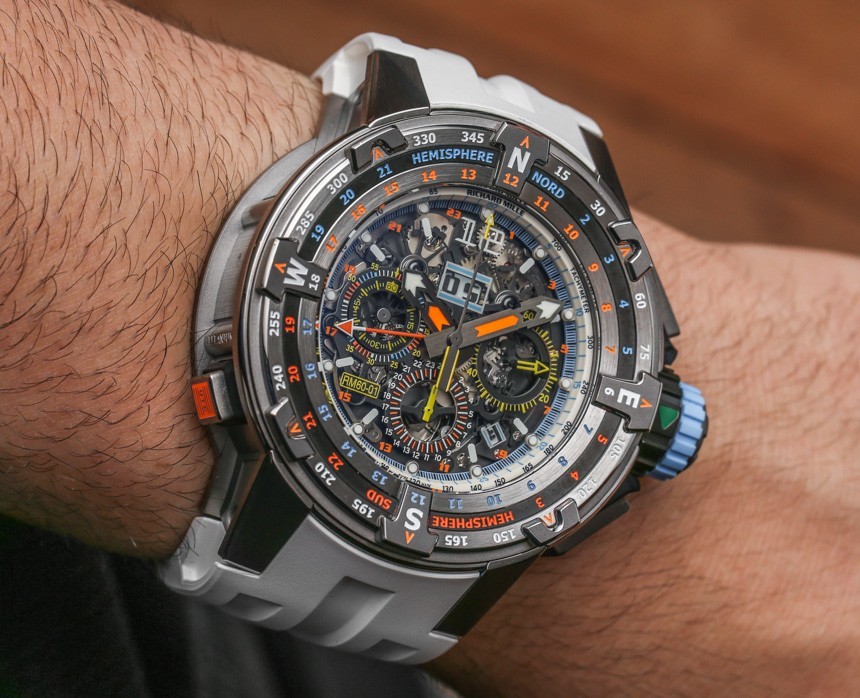 考慮到零售價,我可能永遠不會成為 Richard Mille 的顧客,但我是它的粉絲。我還要說的是,在大多數情況下,Richard Mille 手表實物比圖片好看得多。一個很好的例子是這款 Richard Mille RM 60-01 Automatic Flyback Chronograph Regatta Les Voiles de St. Barth 手表,它的白色表帶和藍色和橙色點綴在營銷圖片中看起來并不特別帥氣。然而,戴在手腕上,在這個令人驚嘆的熱帶度假島嶼環境中,色彩和設計流暢地結合在一起,打造出與周圍環境極為相稱的時計展示。它只是不能很好地轉化為篡改的營銷照片或計算機圖形。Richard Mille 的許多其他色彩更豐富的時計產品也是如此。