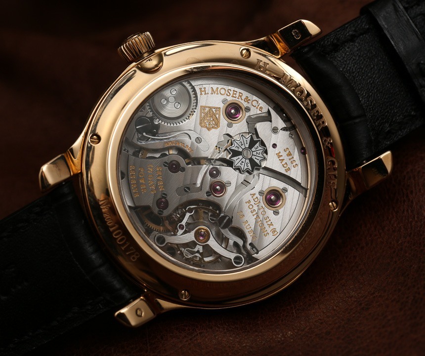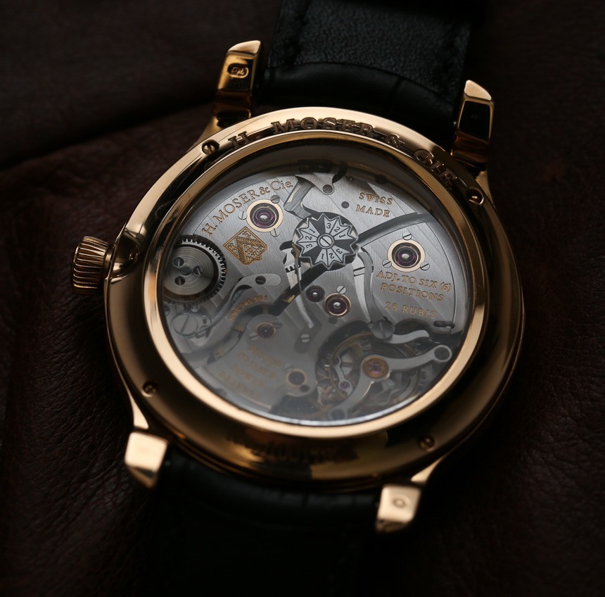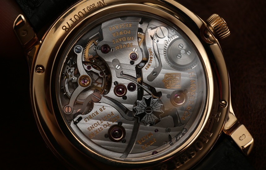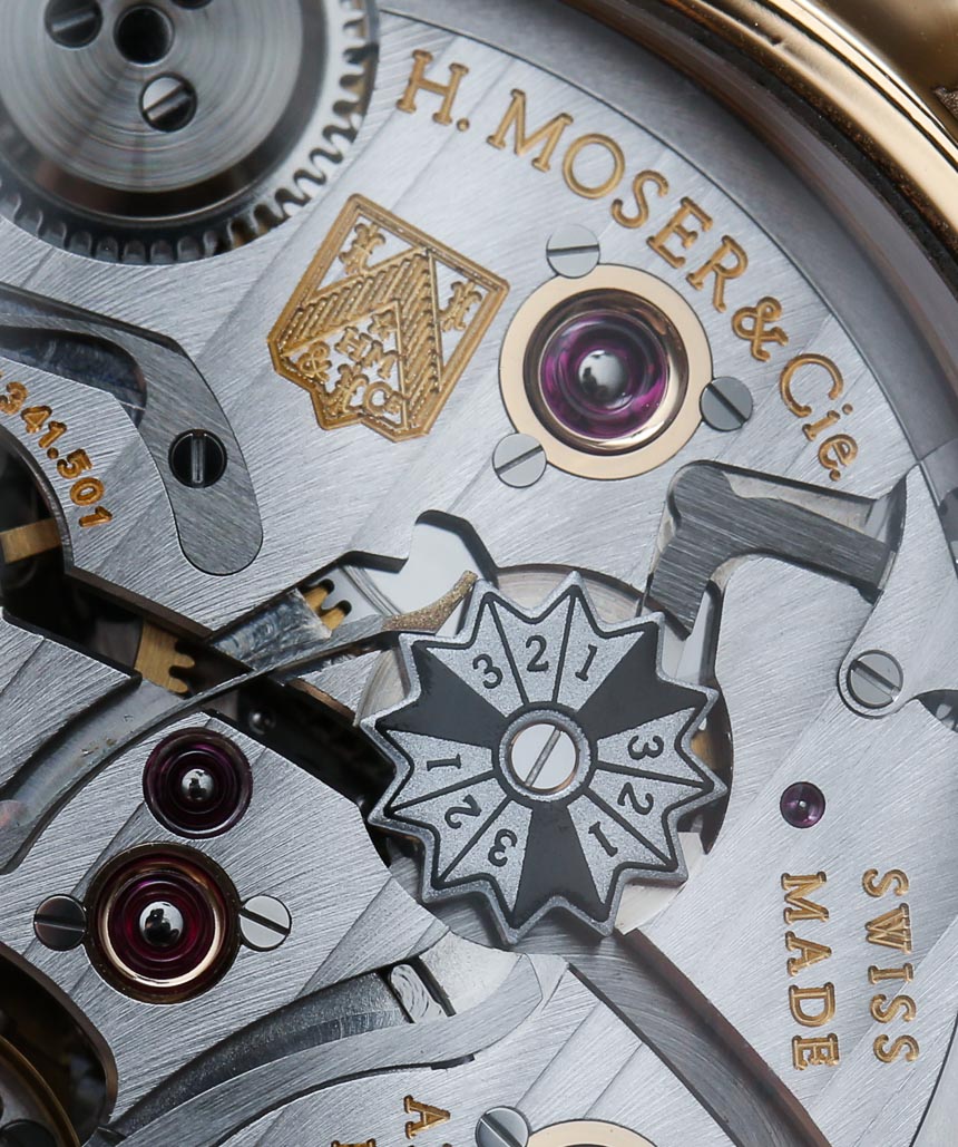 例如,Chopard 為其Quattro 系統(tǒng)使用四個(gè)發(fā)條盒(2 x 2 對(duì)發(fā)條盒)以獲得八天的動(dòng)力儲(chǔ)存,而Hublot LaFerrari的 50 天動(dòng)力儲(chǔ)存來(lái)自 11 個(gè)堆疊的發(fā)條盒。H. Moser & Cie 采用雙發(fā)條盒成對(duì)發(fā)條和穩(wěn)定工作頻率為 18,000 bph 的機(jī)芯,提供 7 天的動(dòng)力儲(chǔ)存。與大多數(shù)“標(biāo)準(zhǔn)”機(jī)械機(jī)芯的 28,800 bph(每小時(shí)節(jié)拍)相比,這是一個(gè)“更慢”的機(jī)芯,但我發(fā)現(xiàn) H. Moser & Cie Endeavor Perpetual Calendar 非常準(zhǔn)確。H. Moser & Cie 甚至在調(diào)節(jié)系統(tǒng)中使用帶有 Breguet 超線圈的奇特的“原裝 Straumann 游絲”,以進(jìn)一步保持時(shí)間的準(zhǔn)確性。