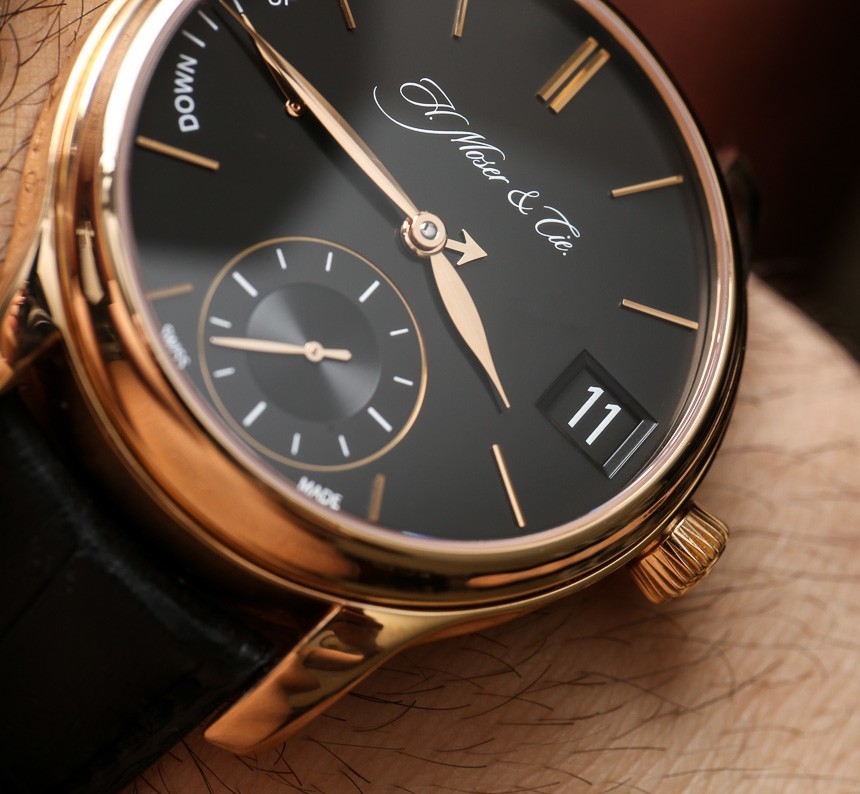 戴在手腕上的H. Moser & Cie. Endeavour Perpetual Calendar腕表寬40.8毫米,厚11.1毫米。對(duì)我來(lái)說(shuō),這是一個(gè)非常好的正裝手表尺寸,我發(fā)現(xiàn)即使穿短袖也很舒服(我很少穿長(zhǎng)袖)。我提到這個(gè)是因?yàn)楹芏鄷r(shí)候,如果你不穿長(zhǎng)袖,較小的手表看起來(lái)非常嬌小。出于這個(gè)原因,在商業(yè)環(huán)境更多的寒冷城市,人們佩戴較小的手表來(lái)搭配長(zhǎng)袖,而在洛杉磯和邁阿密等更溫暖的地方,更多的是“休閑文化”,你大多穿短袖,人們佩戴較大的手表.