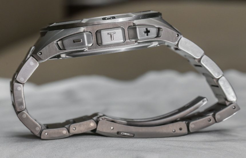 盡管如此,天梭 T-Touch Expert Solar 感覺就像一款超大尺寸的 T-Touch。我上次評(píng)測的 T-Touch Expert 寬 43 毫米,而天梭 T-Touch Expert Solar 寬 45 毫米,表耳寬,戴在手腕上很寬。表殼仍然輕巧舒適,但現(xiàn)在您的情況是,表耳很容易超出許多人的手腕邊緣,給手表帶來“太大”的感覺。這真的只取決于你手腕的大小。