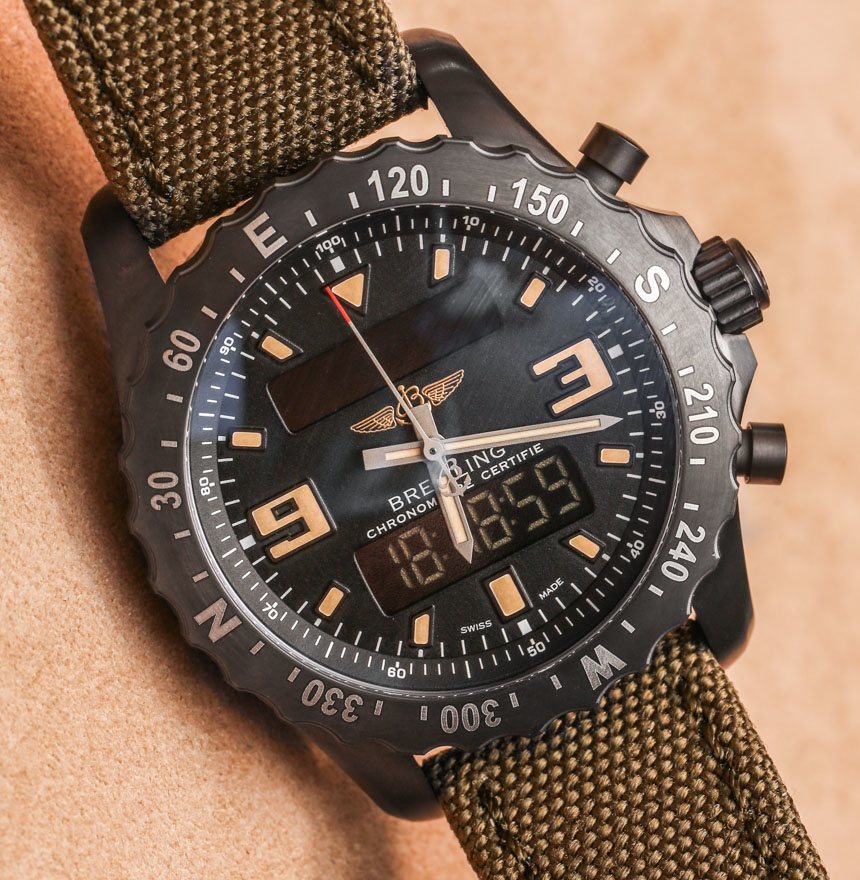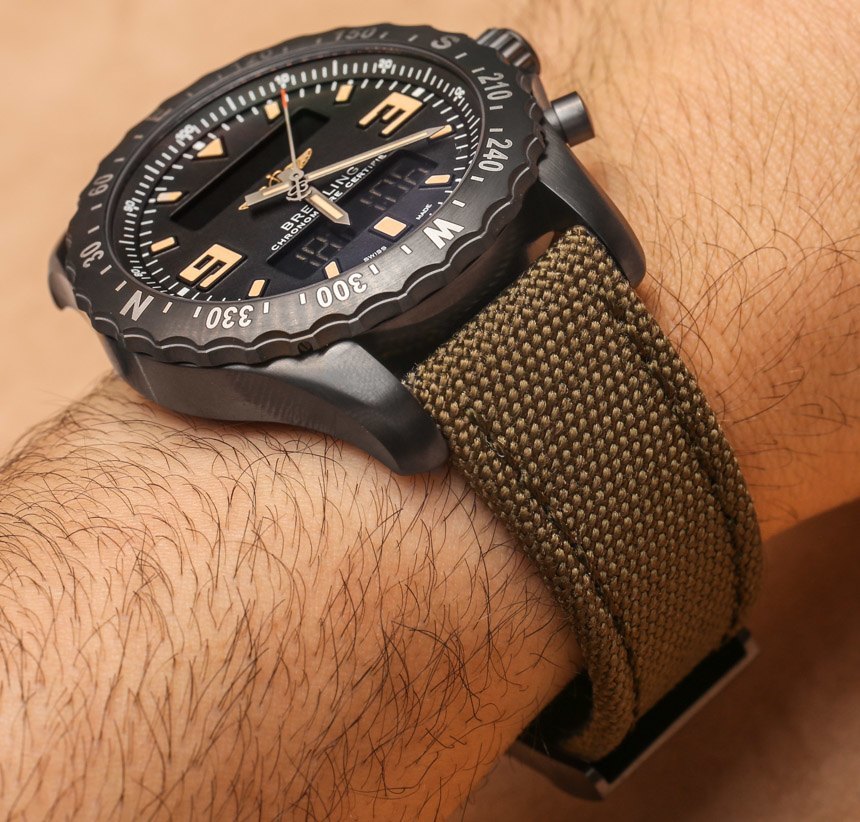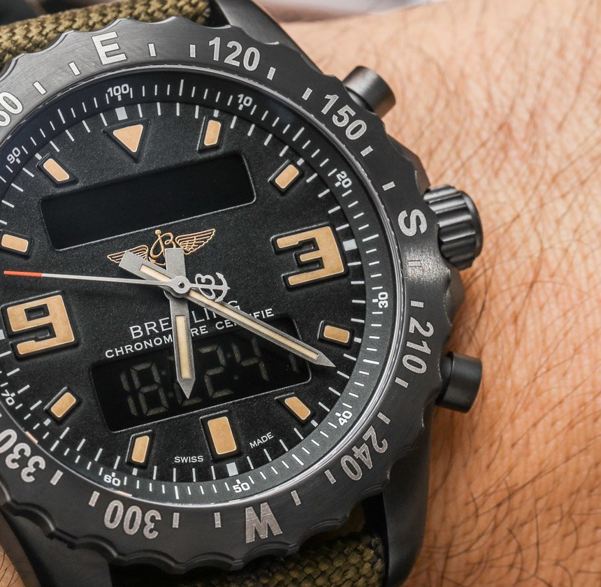 Breliting Chronospace Military 的 46 毫米寬并不小,但 Chronospace 從來都不是(它也恰好有 15.6 毫米厚)。它也不是百年靈生產的最大的石英表。上面提到的百年靈駕駛艙 B50 和百年靈緊急事件 II 手表的表殼直徑更大。然而,Breliting Chronospace Military 確實佩戴舒適,佩戴它的“真正的男人”會發現表殼的黑色 – 以及它在表帶上的位置使其佩戴起來比你想象的要小一些。盡管如此,這是一塊大手表,而且無法繞過它。那些對較小的模擬/數字 Breitling 感興趣的人應該看看像Breitling Aerospace Evo 這樣的東西(在這里動手)。廣告留言廣告信息結束
