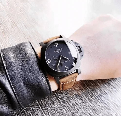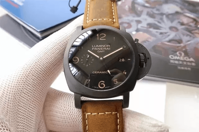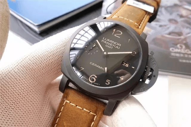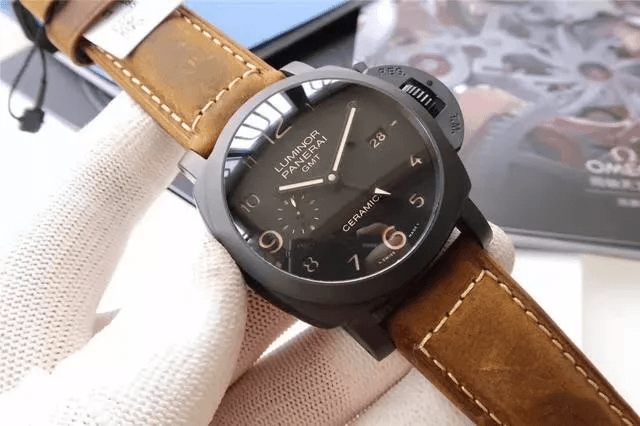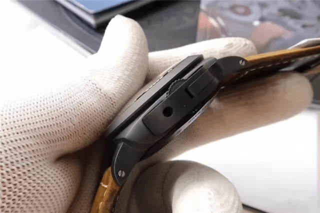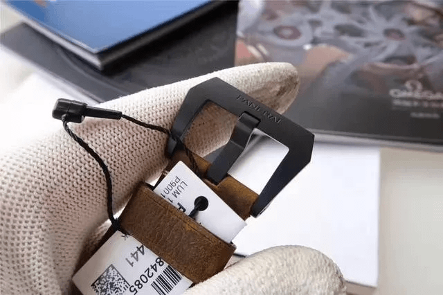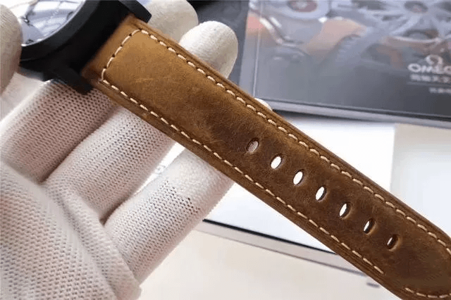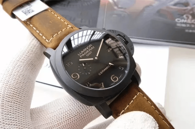 首先按照慣例還是先普及一下參數(shù),以免部分表友還不了解,PAM00441是沛納海現(xiàn)代系列,圓形的表殼直徑為44毫米,大號(hào)表盤也是沛納海的一貫風(fēng)格。表殼和表盤的顏色都為黑色,加上陶瓷的材質(zhì),可以完美的將沛納海外形的氣質(zhì)表現(xiàn)出來。表冠為精鋼和磨砂精鋼的材質(zhì),并且有沛納海標(biāo)志性表橋的保護(hù),在結(jié)構(gòu)上讓腕表更加穩(wěn)固的同時(shí)也讓腕表更加的穩(wěn)重,給人一種沉穩(wěn)可靠的感覺。表鏡為藍(lán)寶石水晶的材質(zhì),透過表鏡可以看見獨(dú)具沛納海特色的阿拉伯?dāng)?shù)字時(shí)標(biāo)以及12點(diǎn)鐘方向顯眼的品牌LOGO,日期顯示窗和小秒針表盤對(duì)稱的分布在3點(diǎn)和9點(diǎn)鐘位置,增加了表盤的內(nèi)容,為我們呈現(xiàn)出了對(duì)稱美感。這款表還應(yīng)用了背透的設(shè)計(jì),雖然機(jī)芯沒有什么閃亮的金屬光澤,但是在陶瓷表殼的包圍之下也散發(fā)出了硬朗的氣息。再加上配有大號(hào)鈦金屬表扣的牛皮表帶,符合沛納海慣的休閑風(fēng)格。